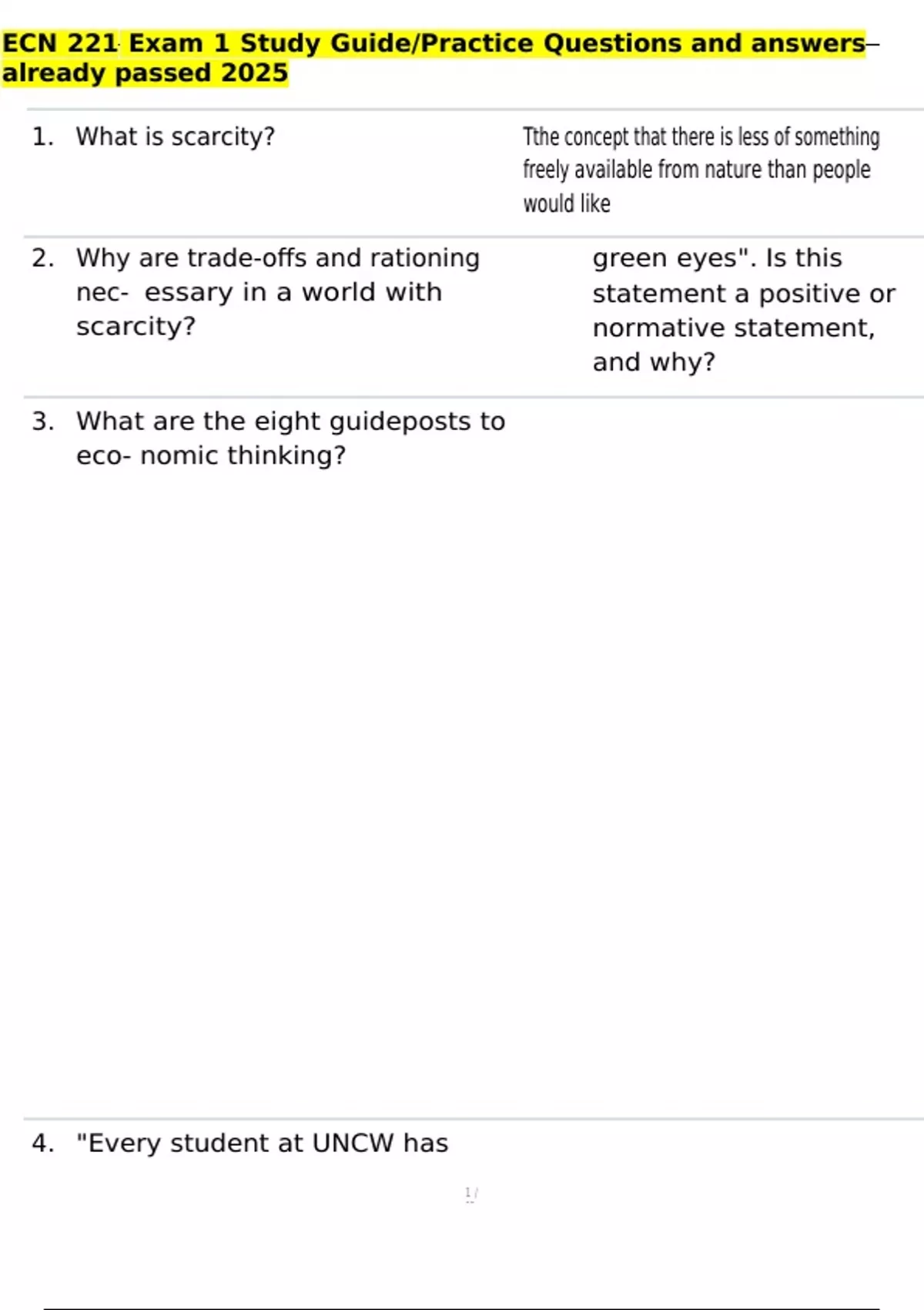 ,ECN 221 Exam 1 Study Guide/Practice Questions and answers