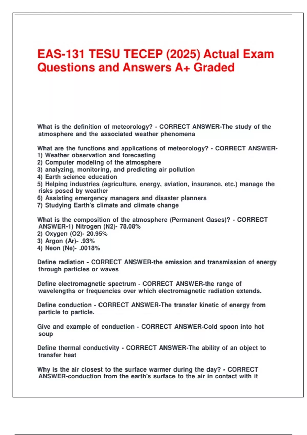 EAS-131 TESU TECEP (2025) Actual Exam Questions and Answers A+ Graded.