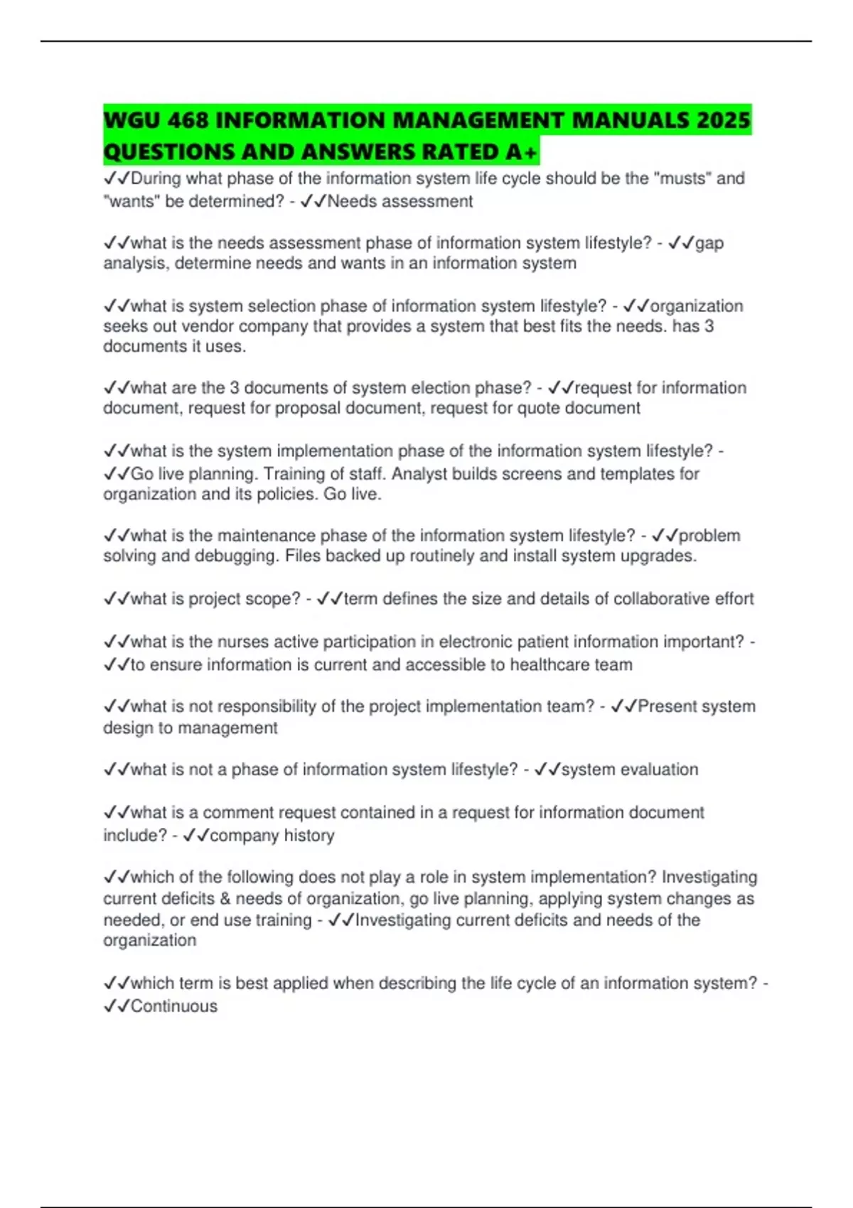 ✔✔what are the 3 documents of system election phase? - ✔✔request for information