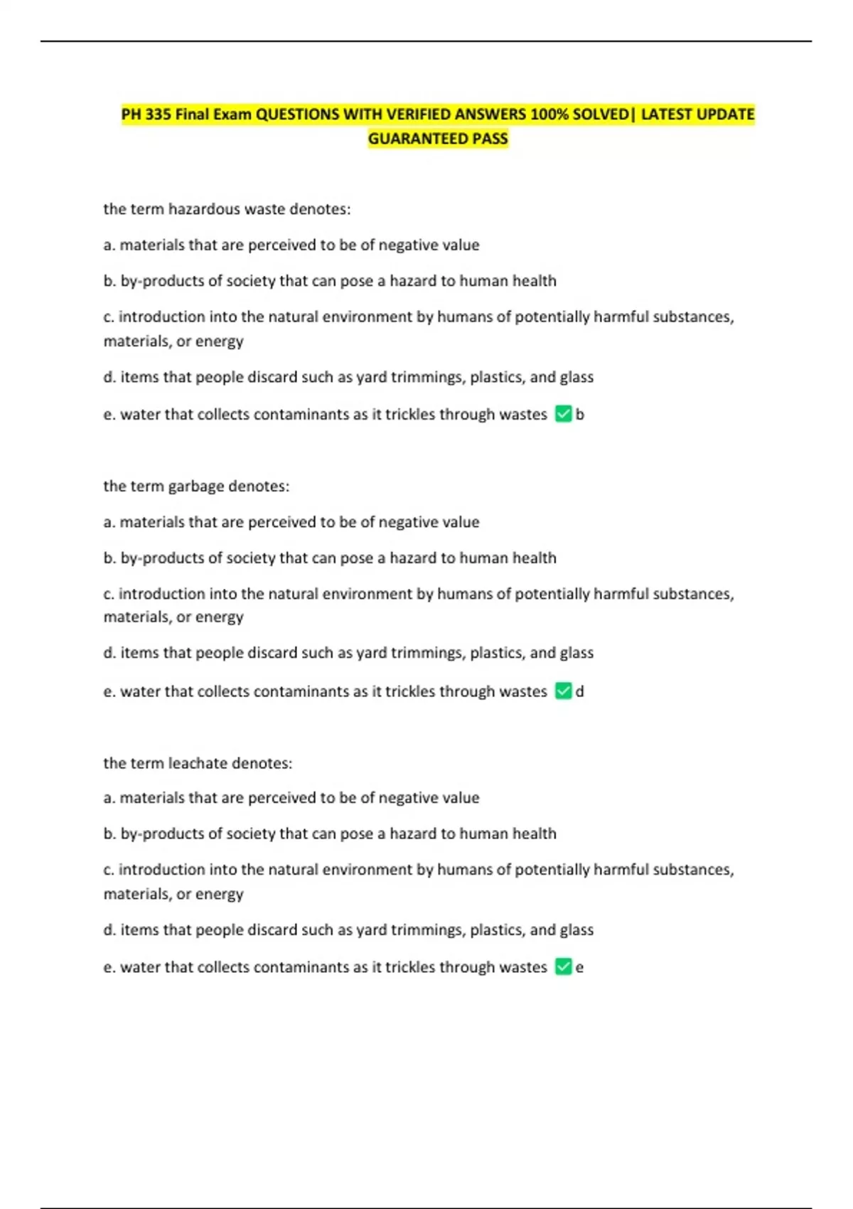 e. water that collects contaminants as it trickles through wastes d