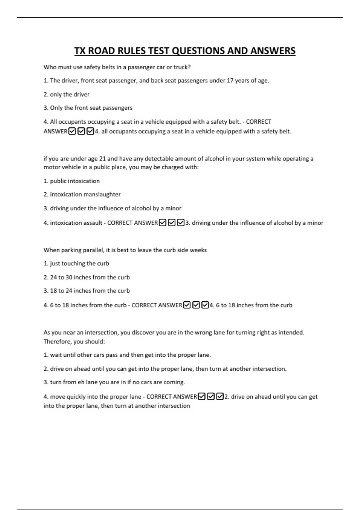 TX ROAD RULES TEST QUESTIONS AND ANSWERS