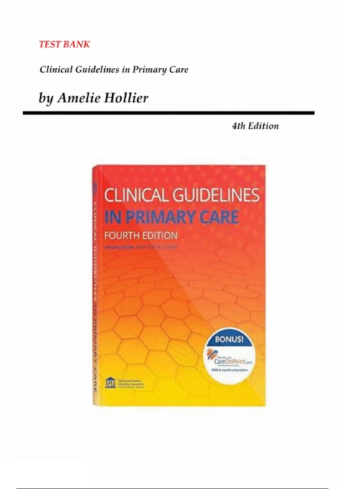 Test Bank for Clinical Guidelines in Primary Care 4th Edition by Amelie Hollier, All Chapters