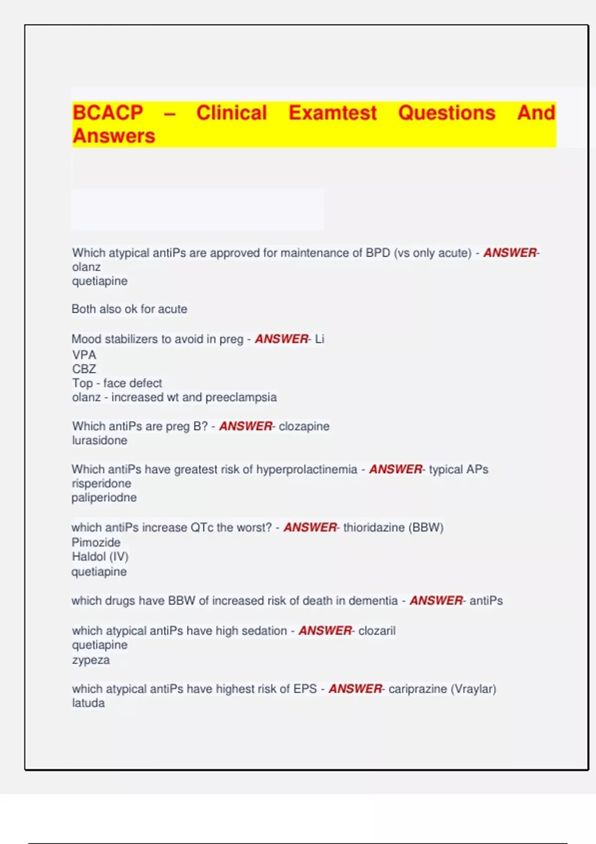 which atypical antiPs have highest risk of EPS - ANSWER- cariprazine (Vraylar)