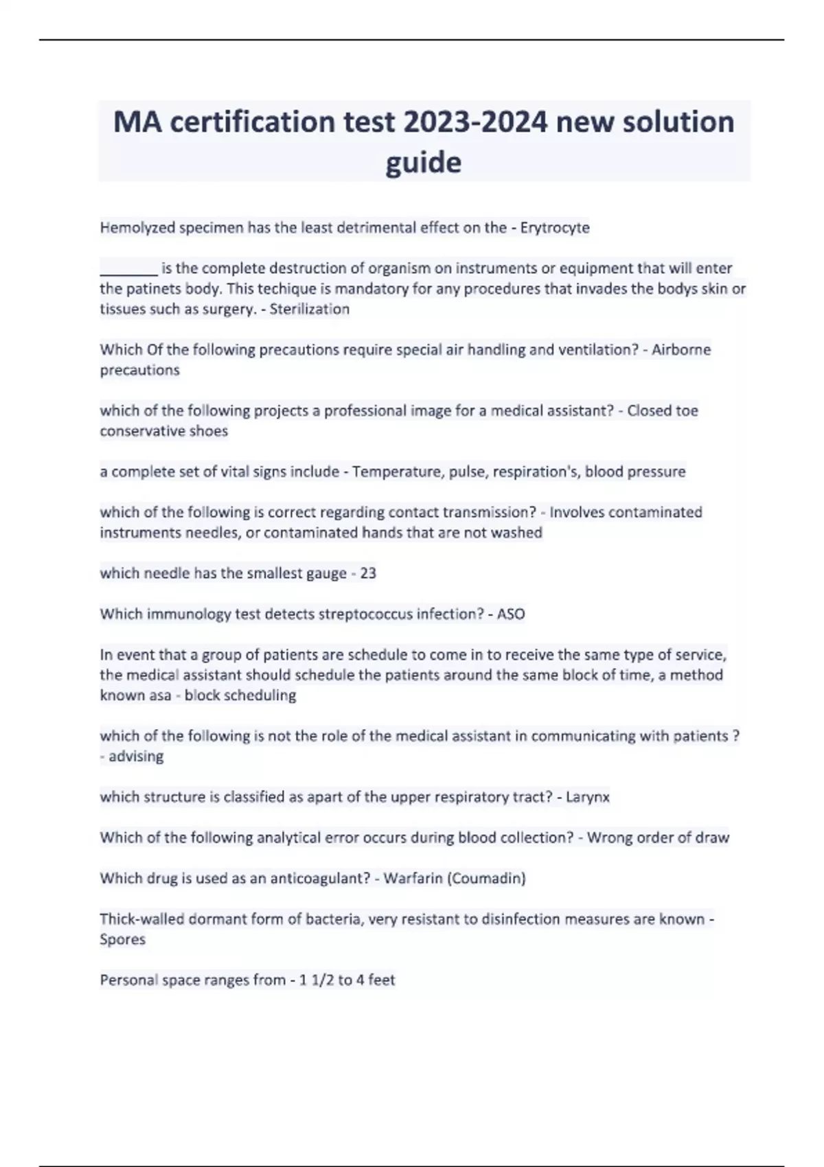 MA certification test new solution guide