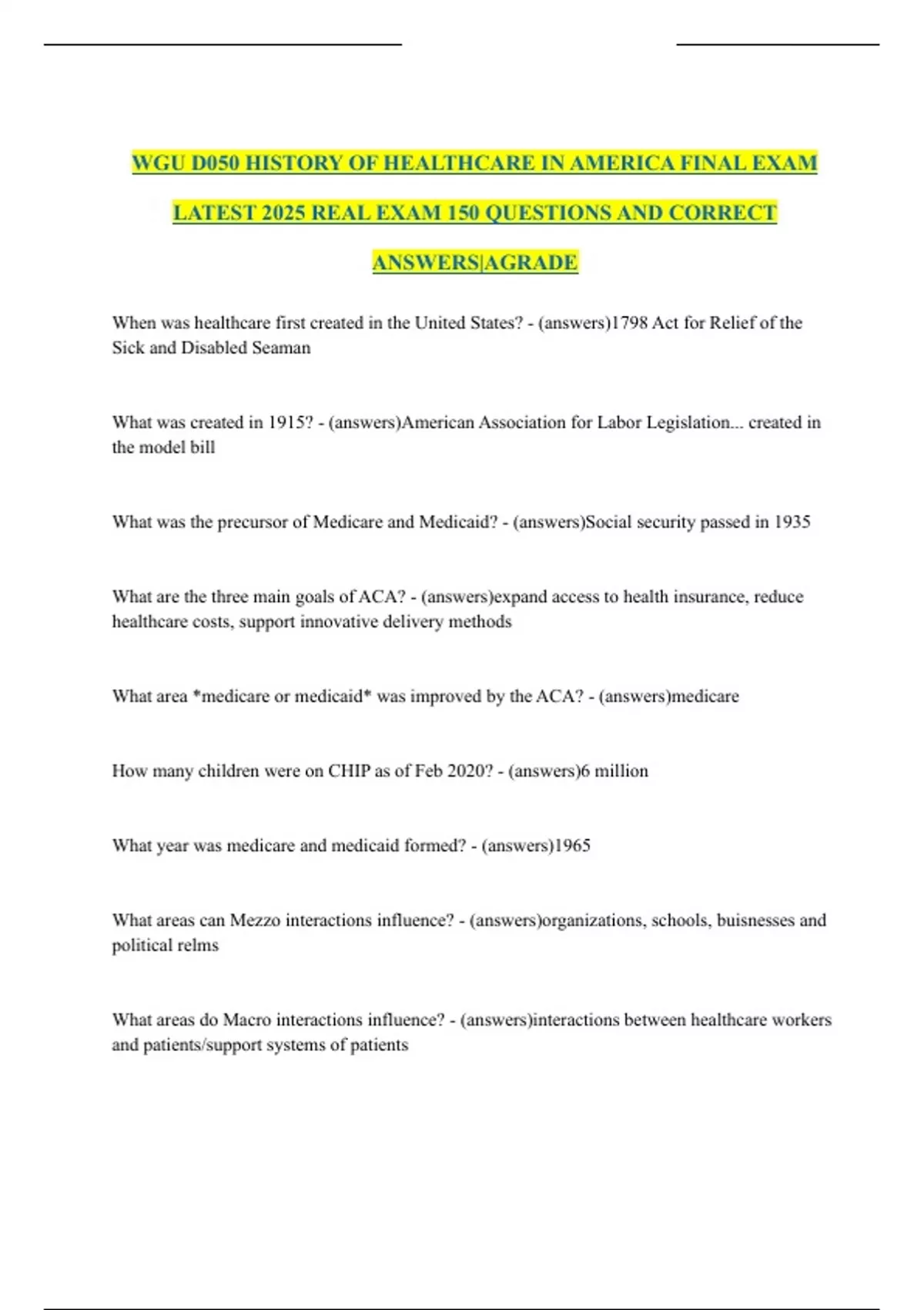 WGU D050 HISTORY OF HEALTHCARE IN AMERICA FINAL EXAM