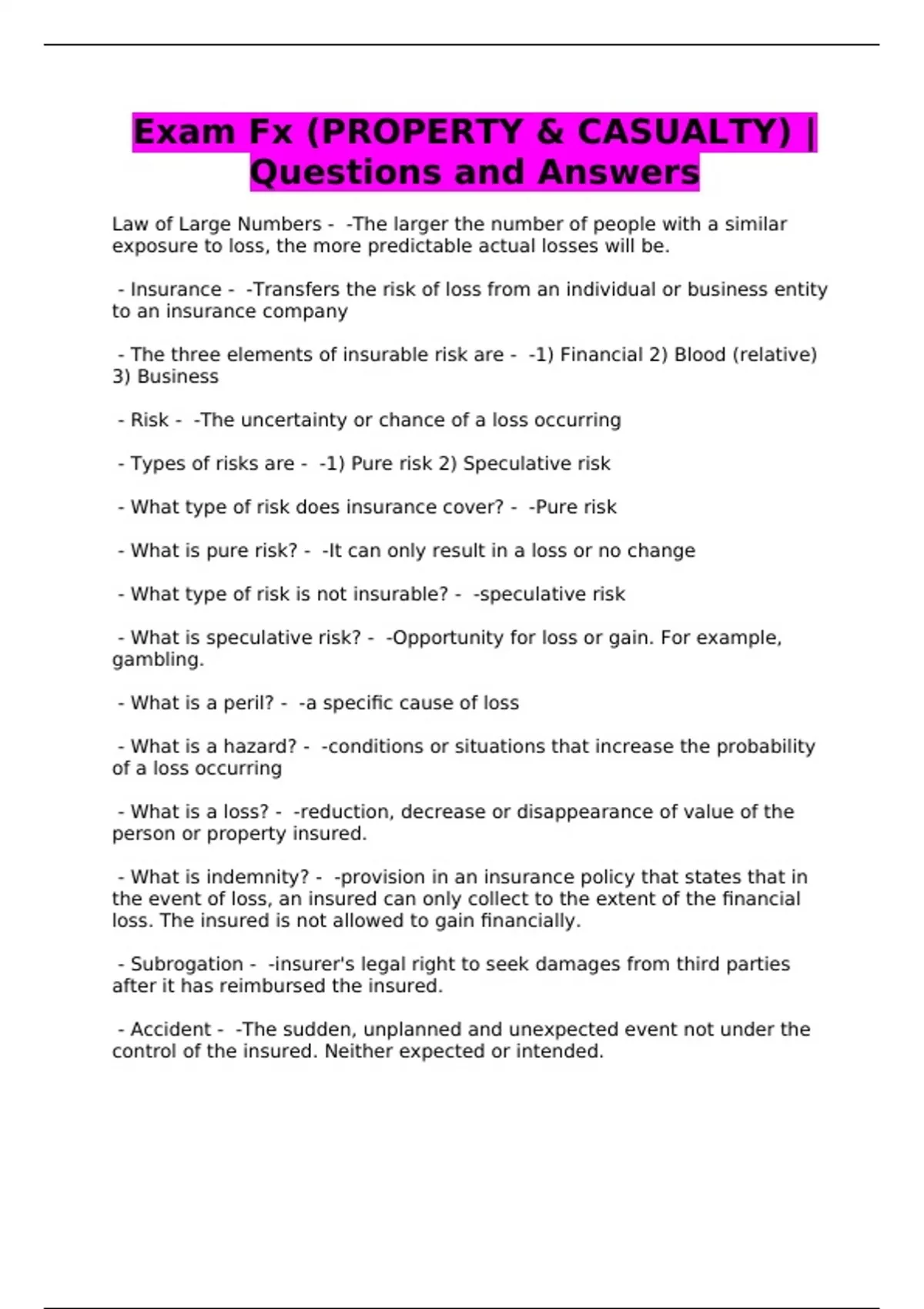Exam Fx (PROPERTY & CASUALTY) |