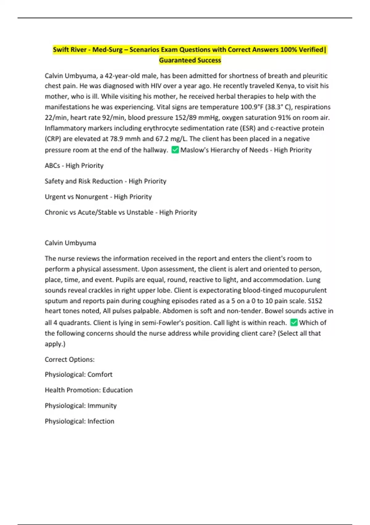 Calvin Umbyuma, a 42-year-old male, has been admitted for shortness of breath and pleuritic