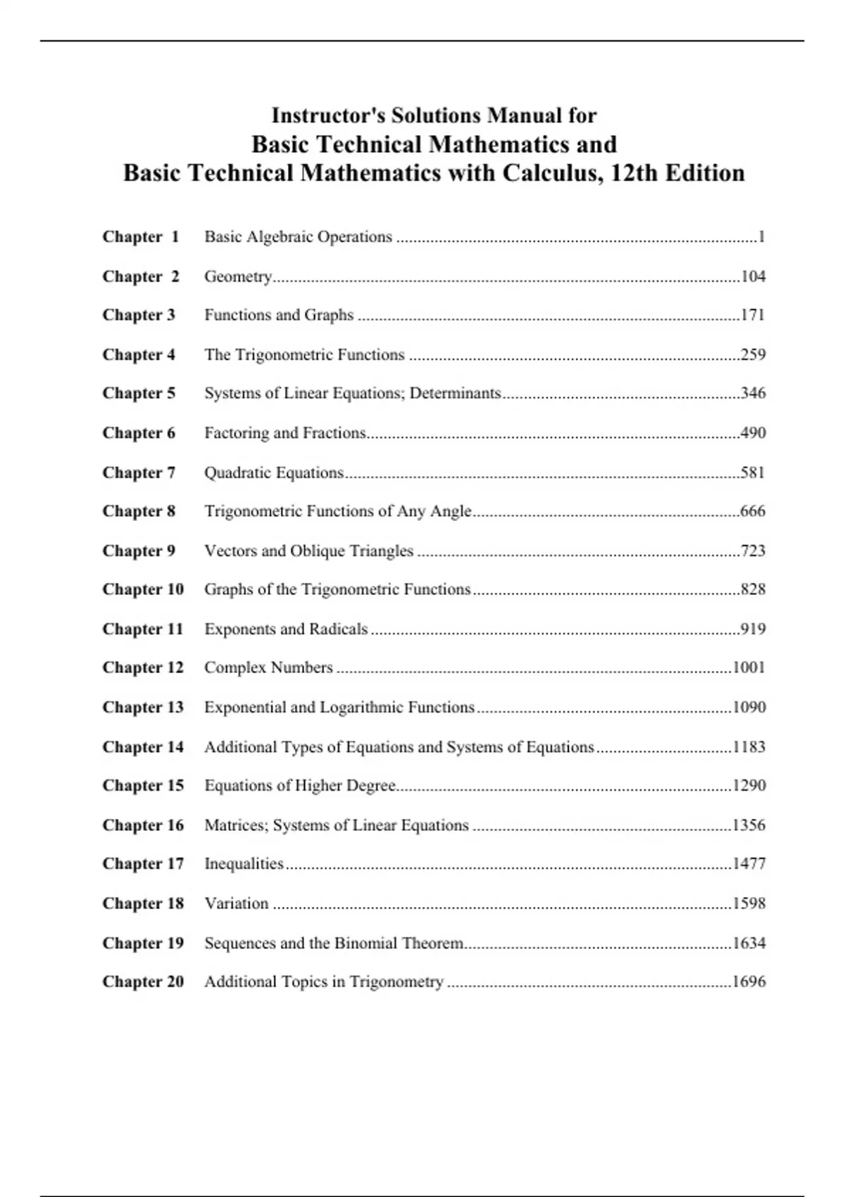 Instructor's Solutions Manual for Basic Technical Mathematics with Calculus, 12th edition by Allyn J. Washington, All Chapters