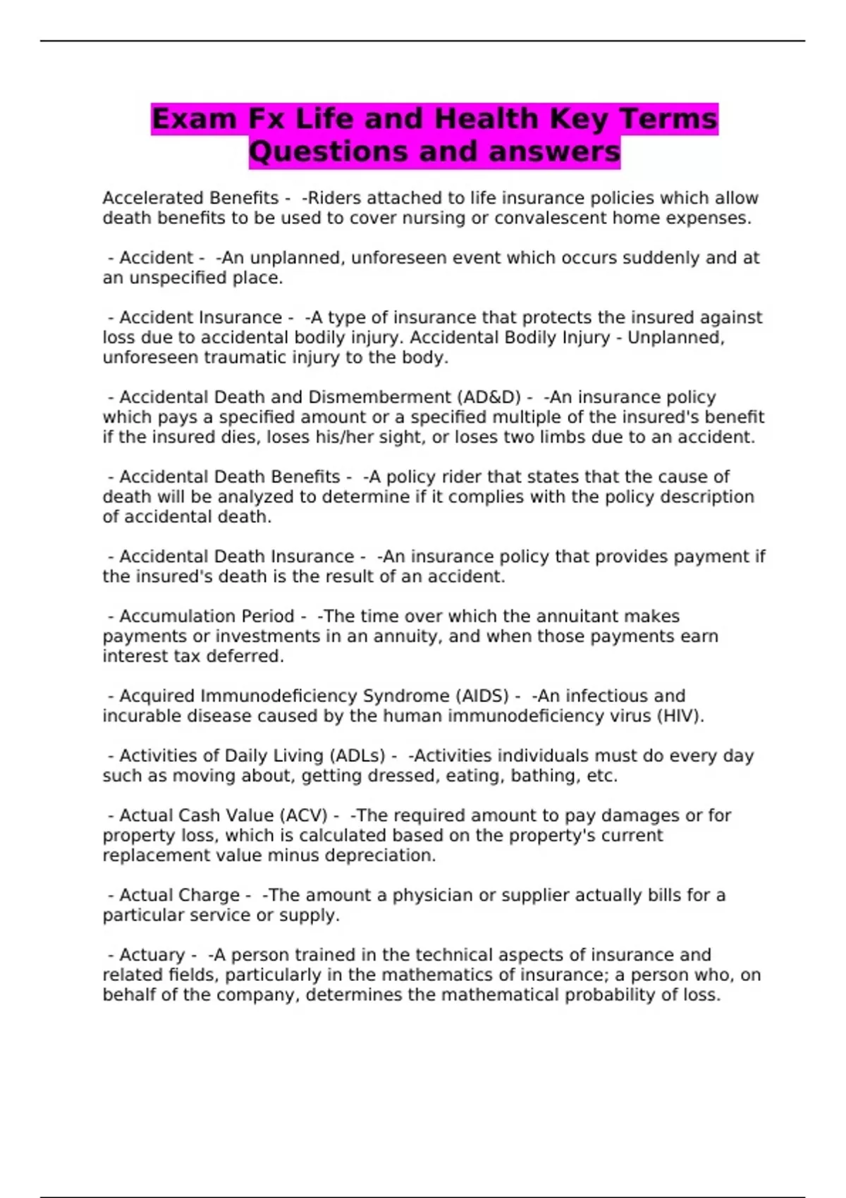 Exam Fx Life and Health Key Terms