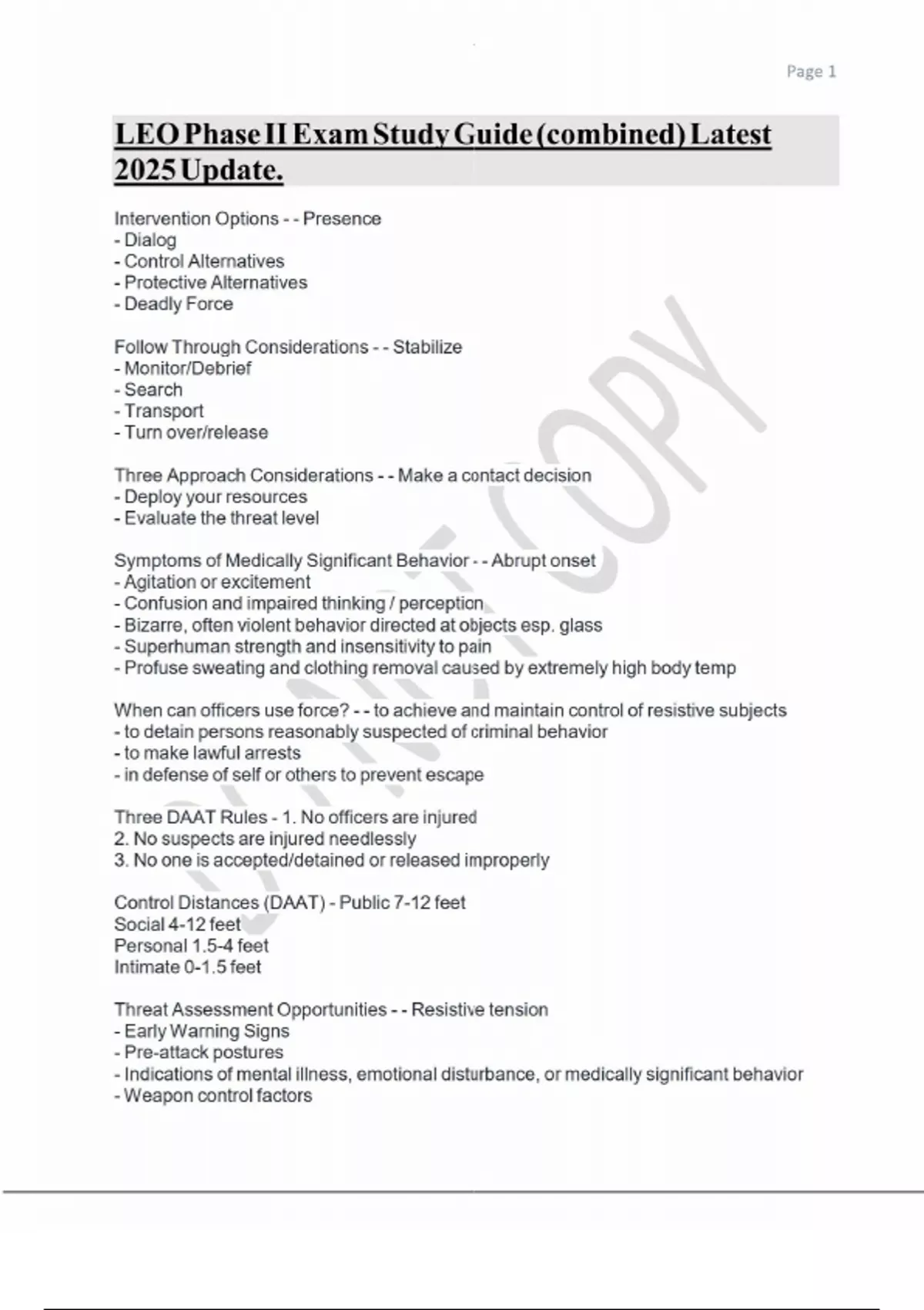 LEO Phase II Exam Study Guide (combined) Latest 2025 Update.