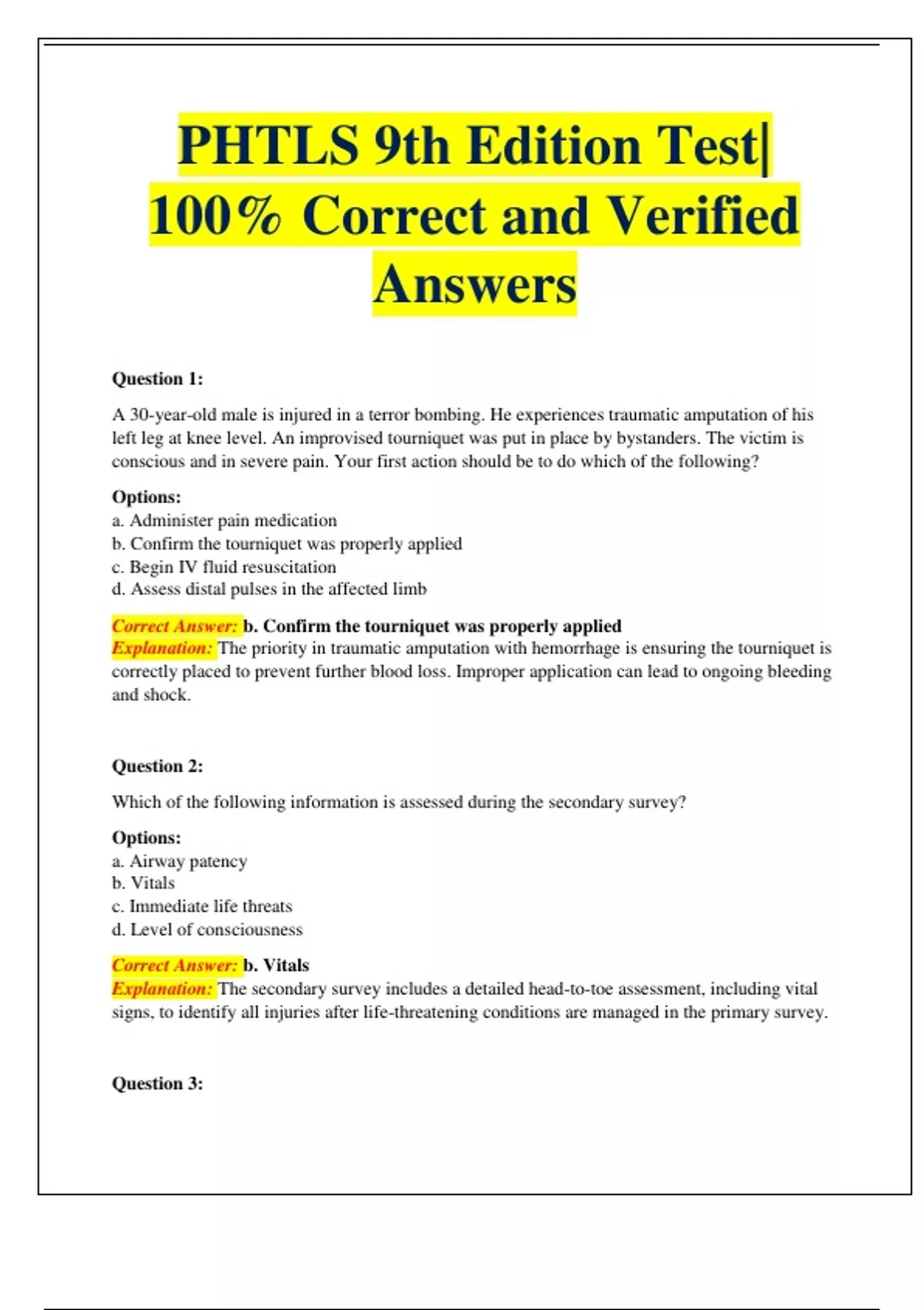 PHTLS 9th Edition Test| 100% Correct and Verified Answers