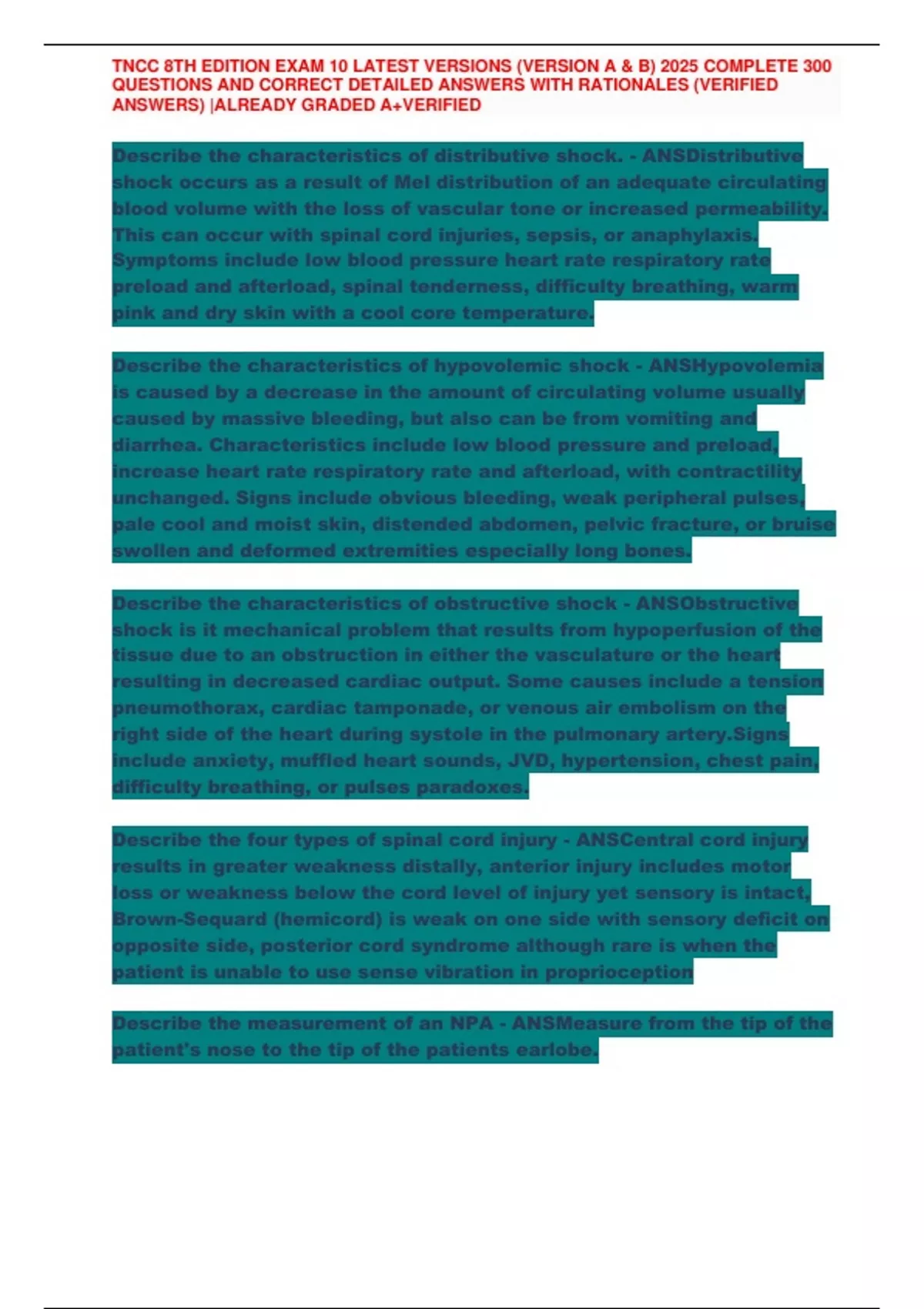 , TNCC 8TH EDITION EXAM 10 LATEST VERSIONS (VERSION A & B) 2025 COMPLETE 300