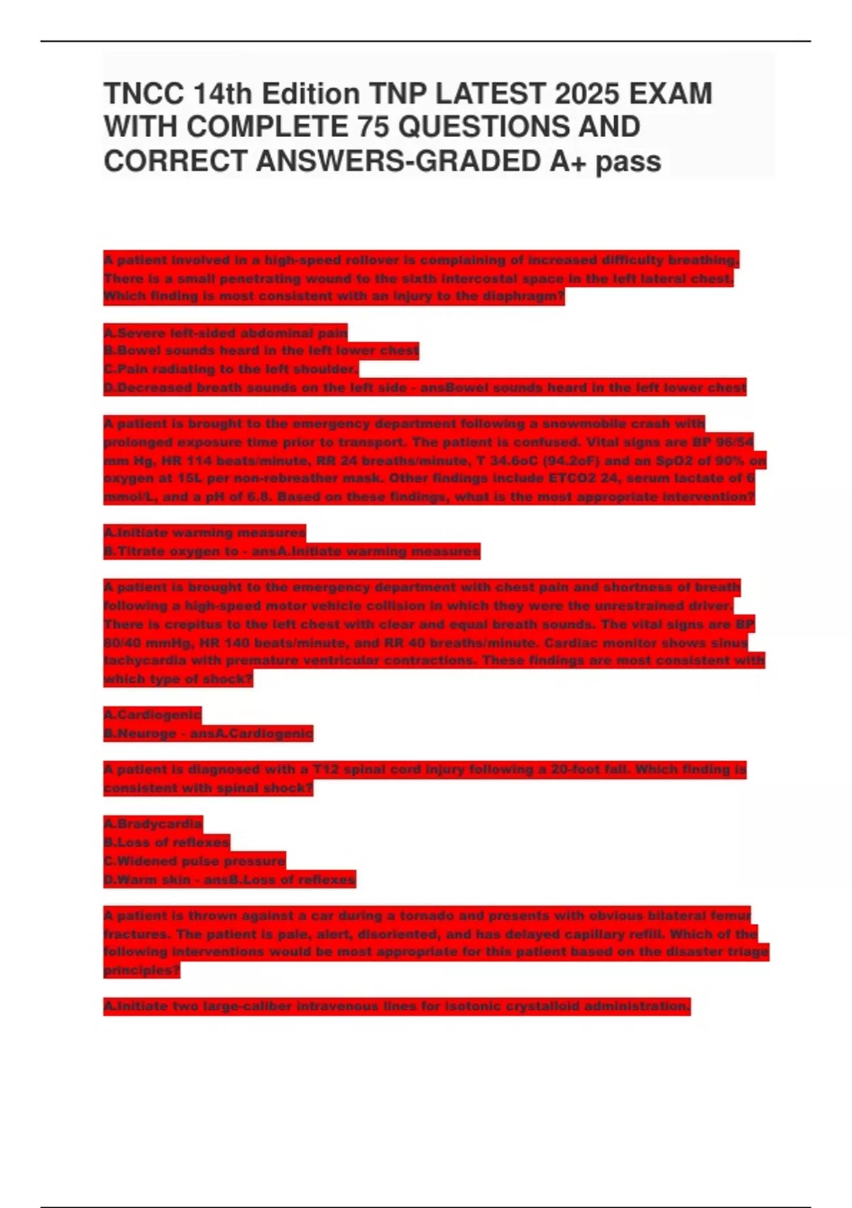 , TNCC 14th Edition TNP LATEST 2025 EXAM