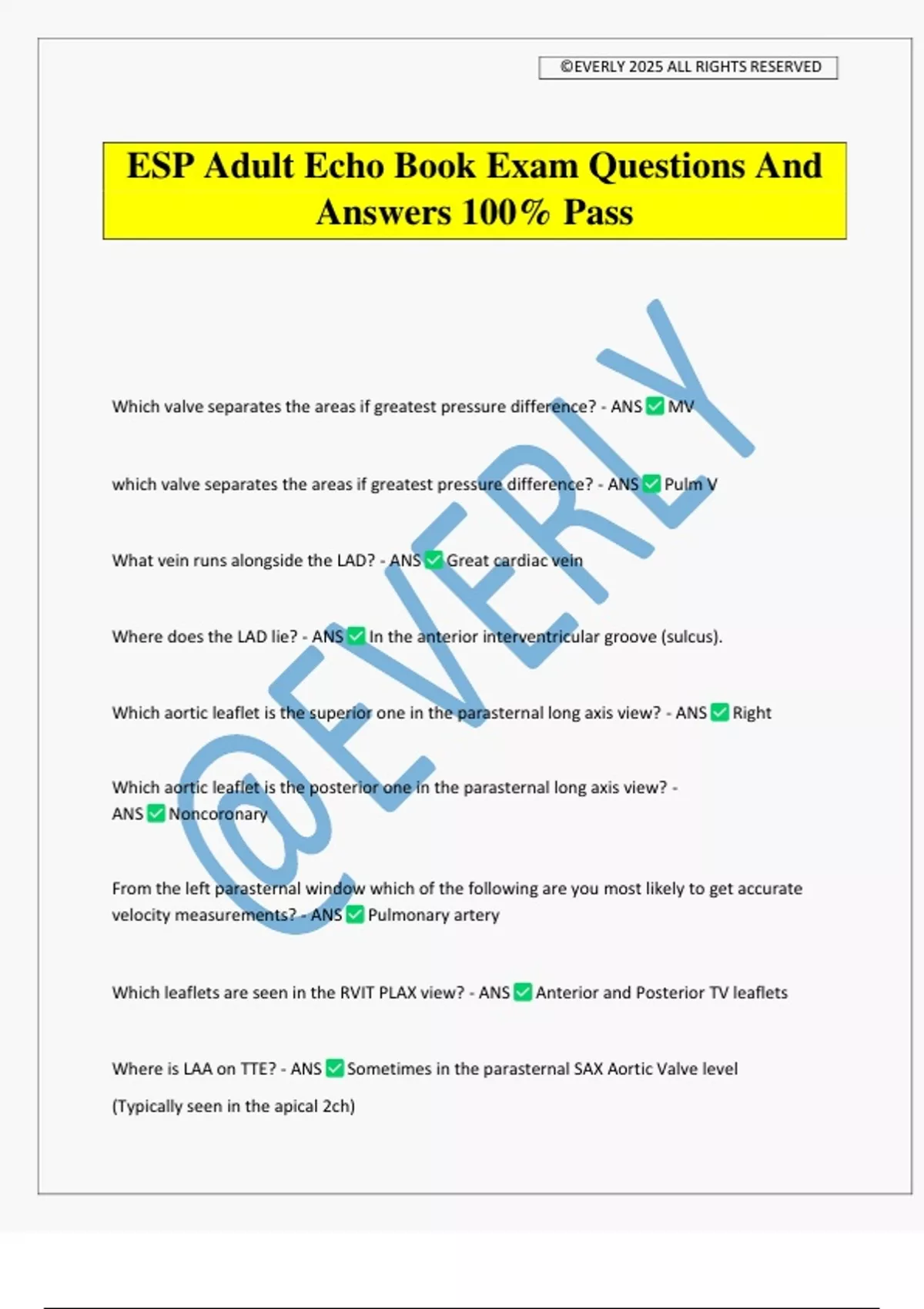 ESP Adult Echo Book Exam Questions And