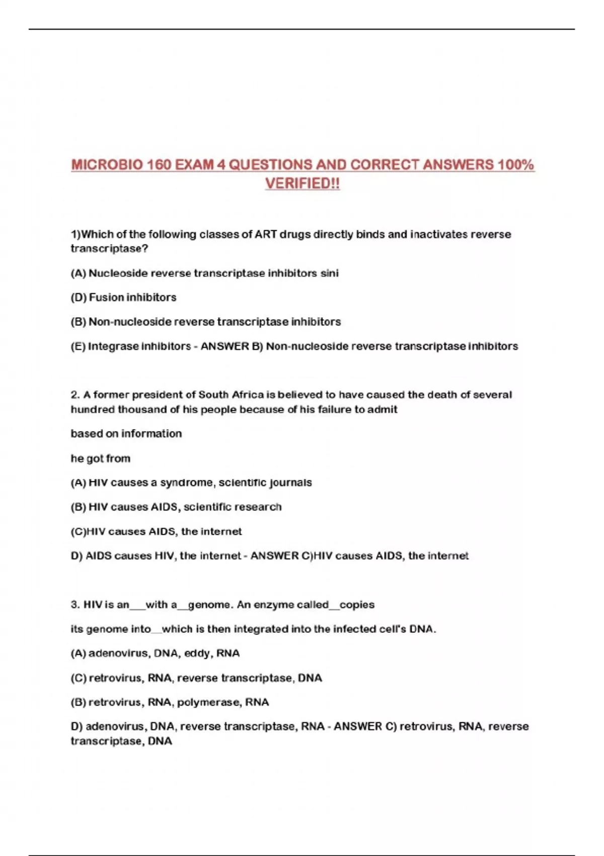 MICROBIO 160 EXAM 4 QUESTIONS AND CORRECT ANSWERS 100% VERIFIED!!...