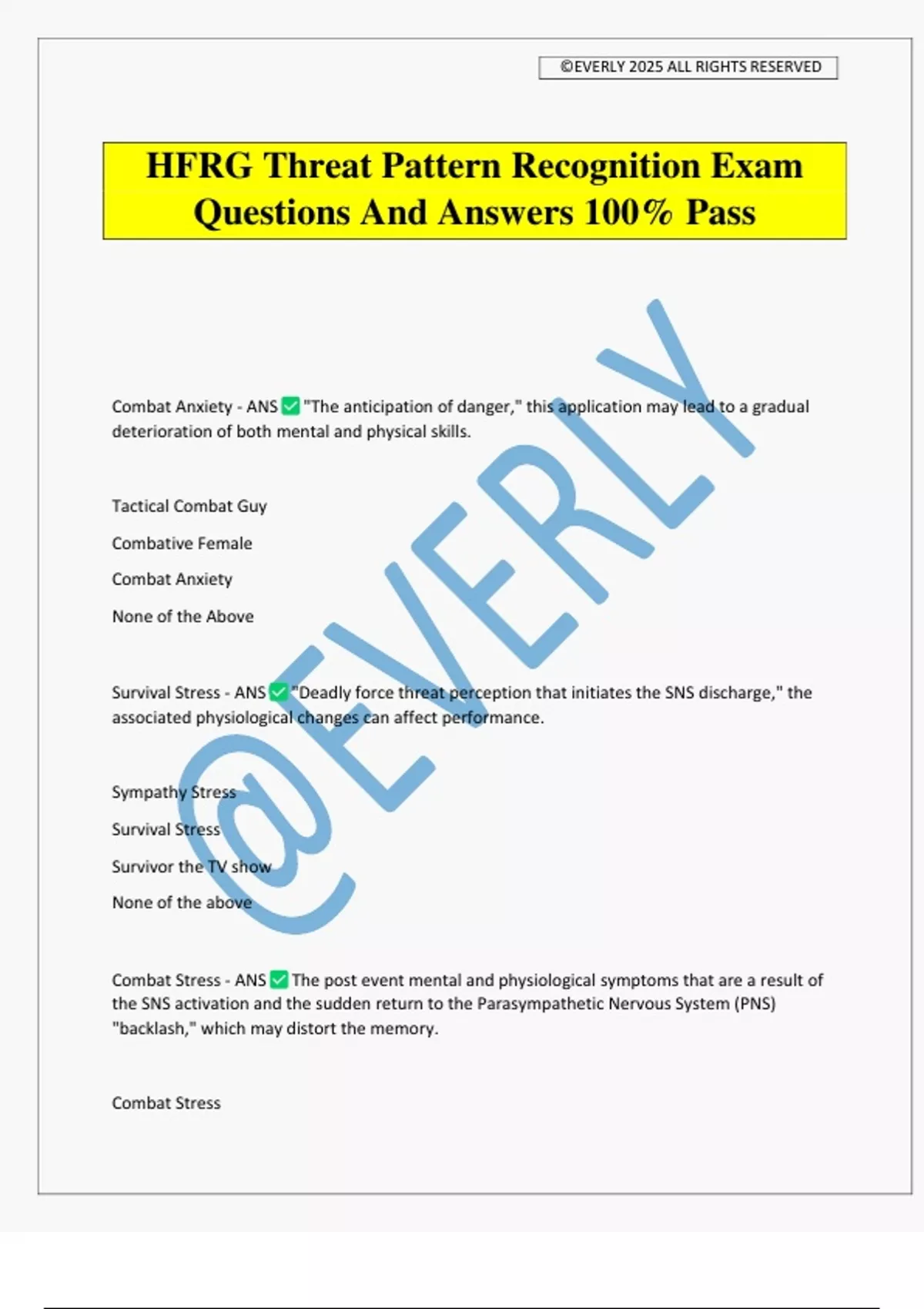 Combat Stress - ANS The post event mental and physiological symptoms that are a result of