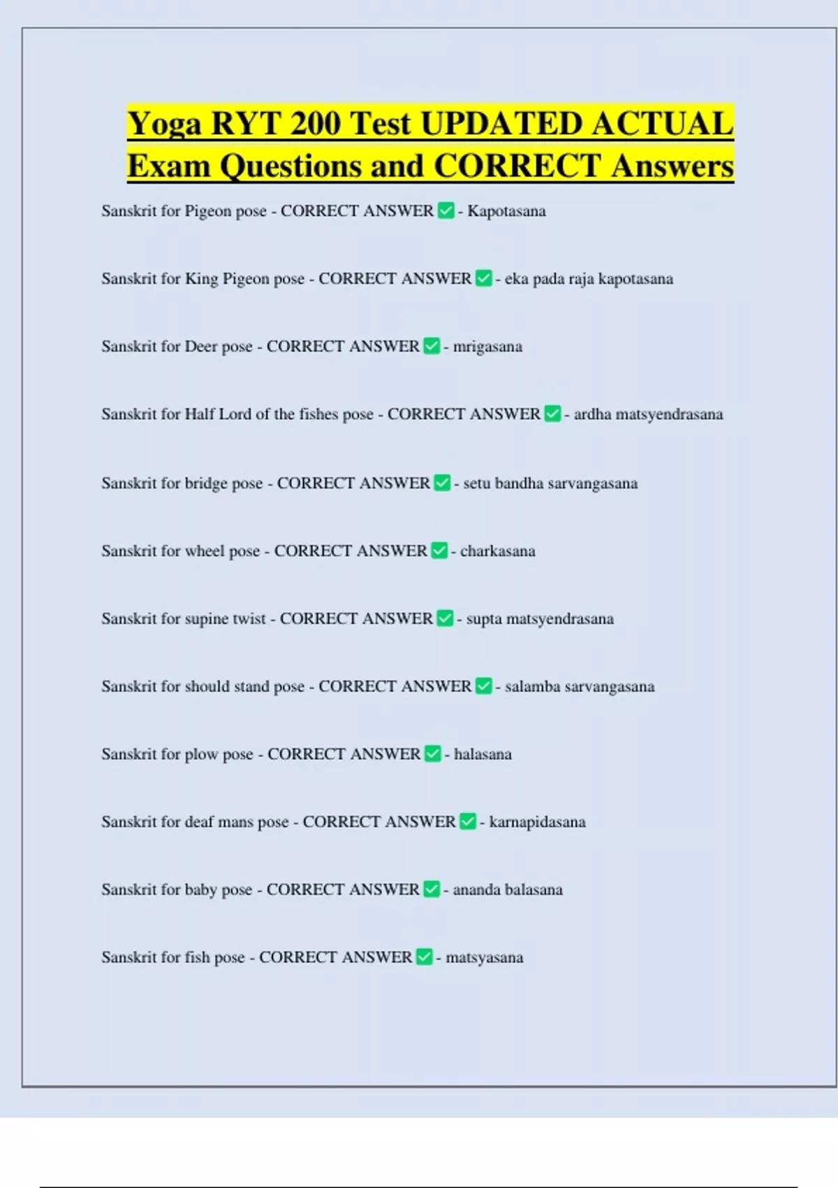 Sanskrit for childs pose - CORRECT ANSWER - balasana