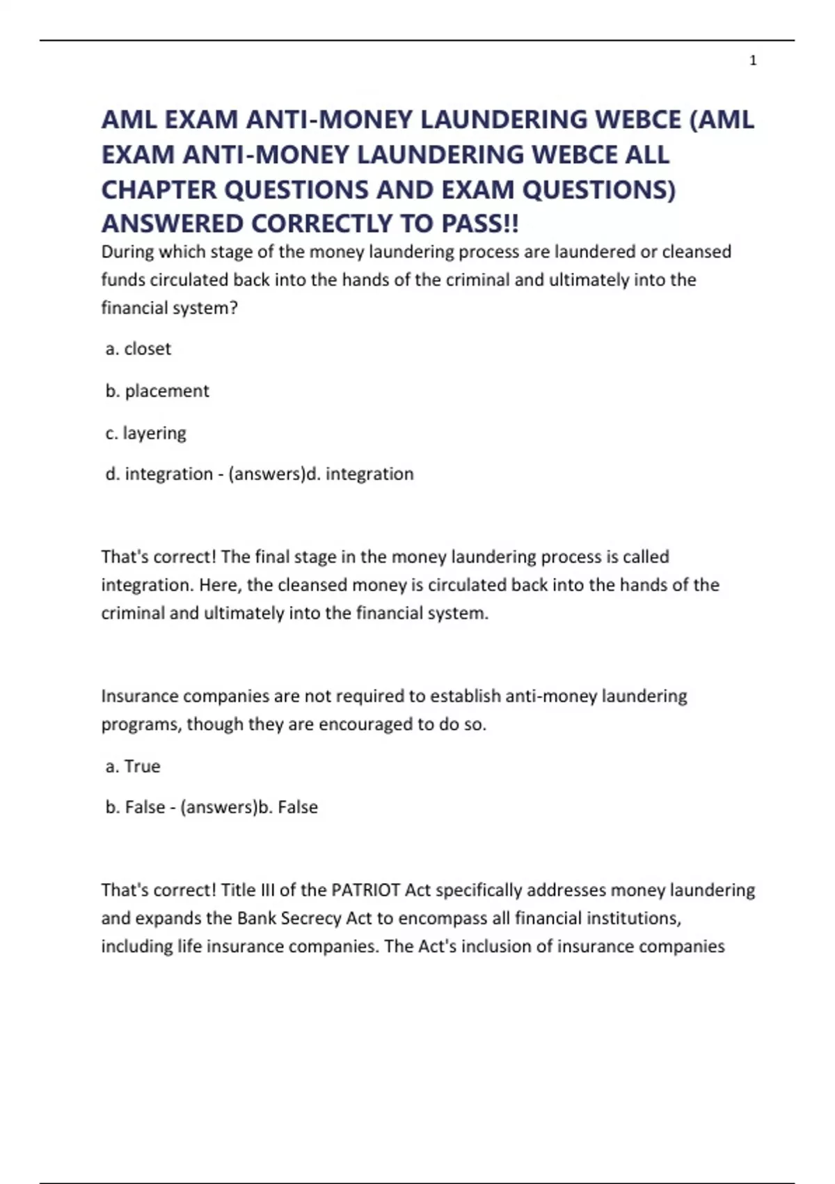 AML EXAM ANTI-MONEY LAUNDERING WEBCE (AML