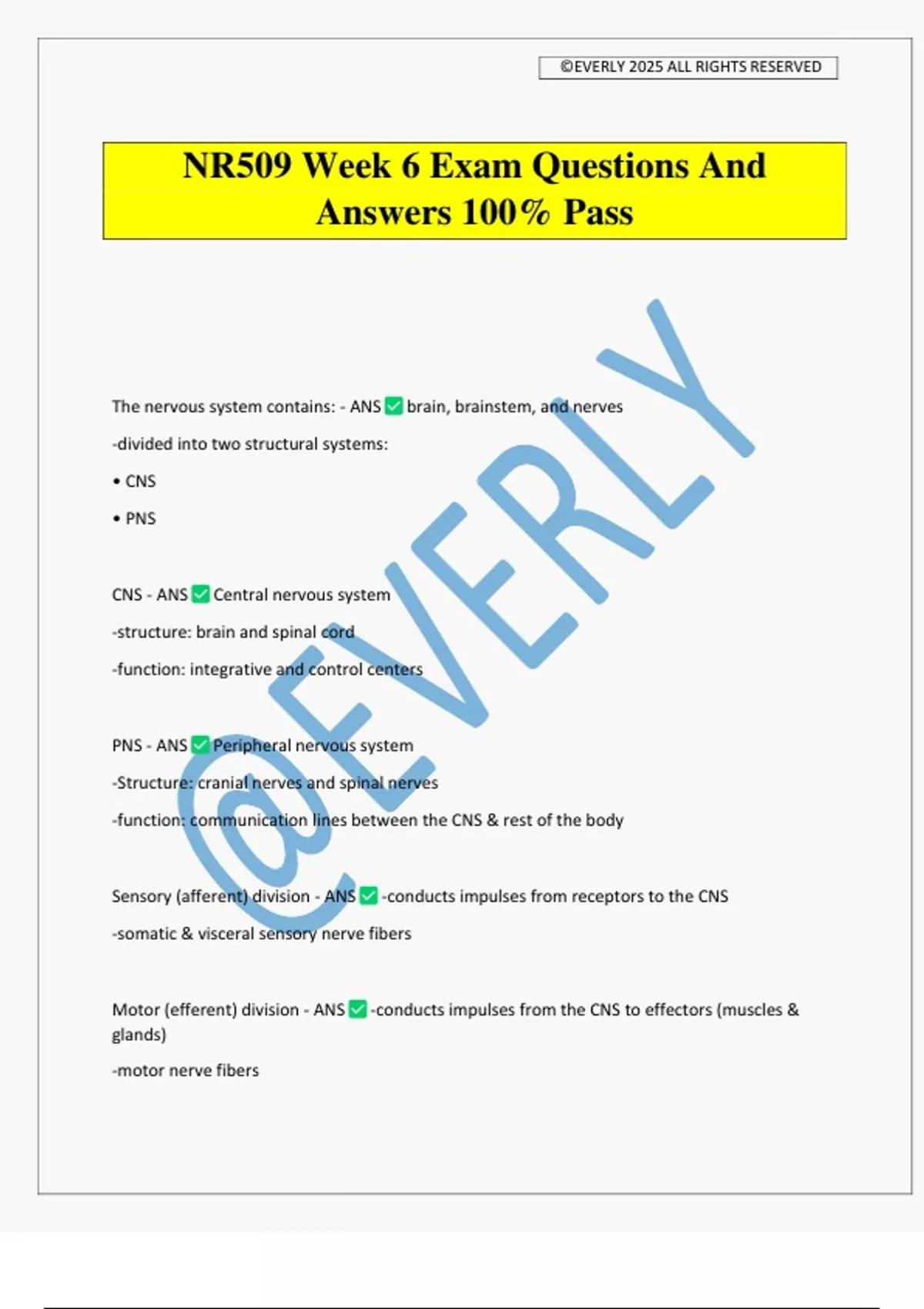 The nervous system contains: - ANS brain, brainstem, and nerves