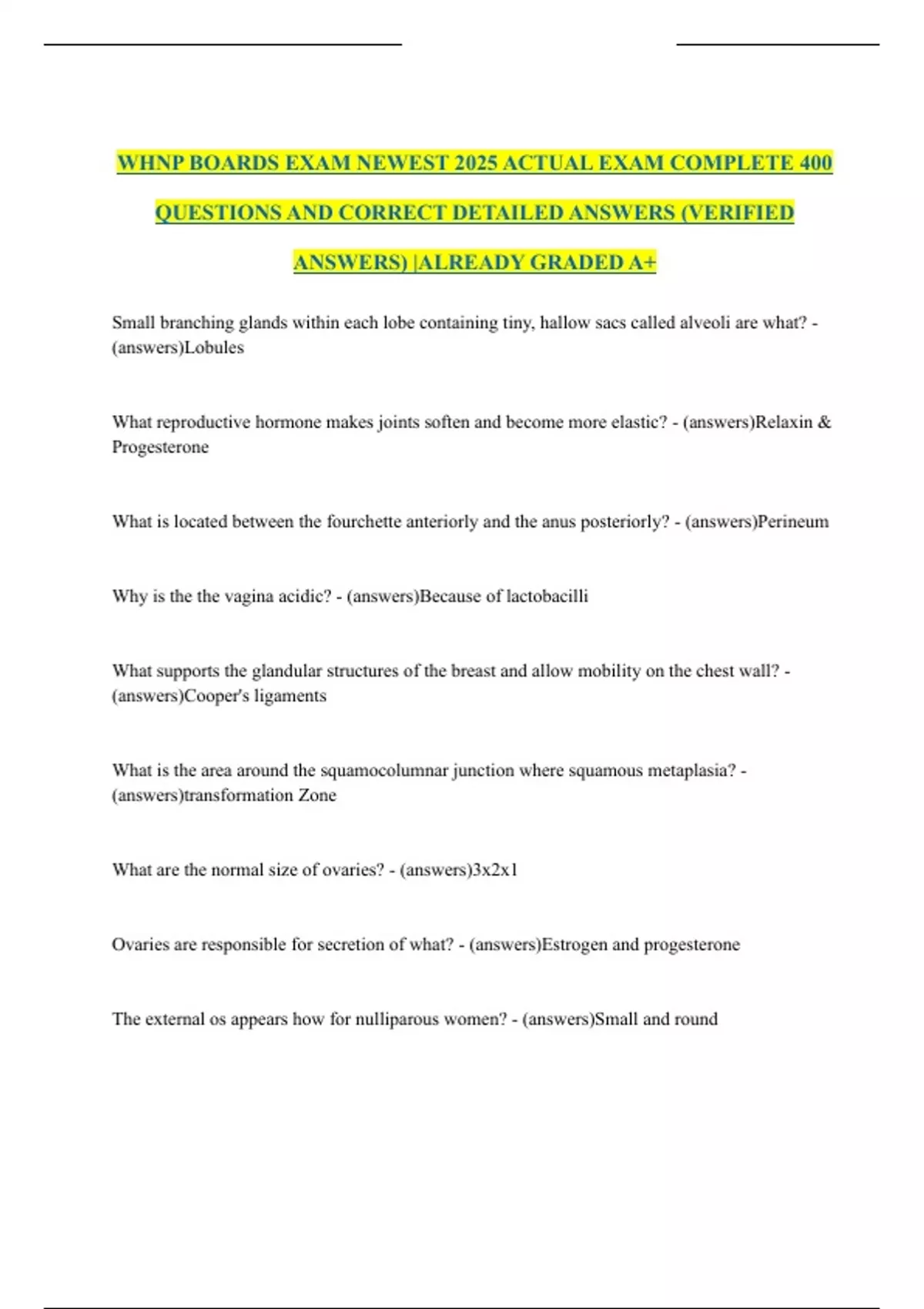 WHNP BOARDS EXAM NEWEST 2025 ACTUAL EXAM COMPLETE 400