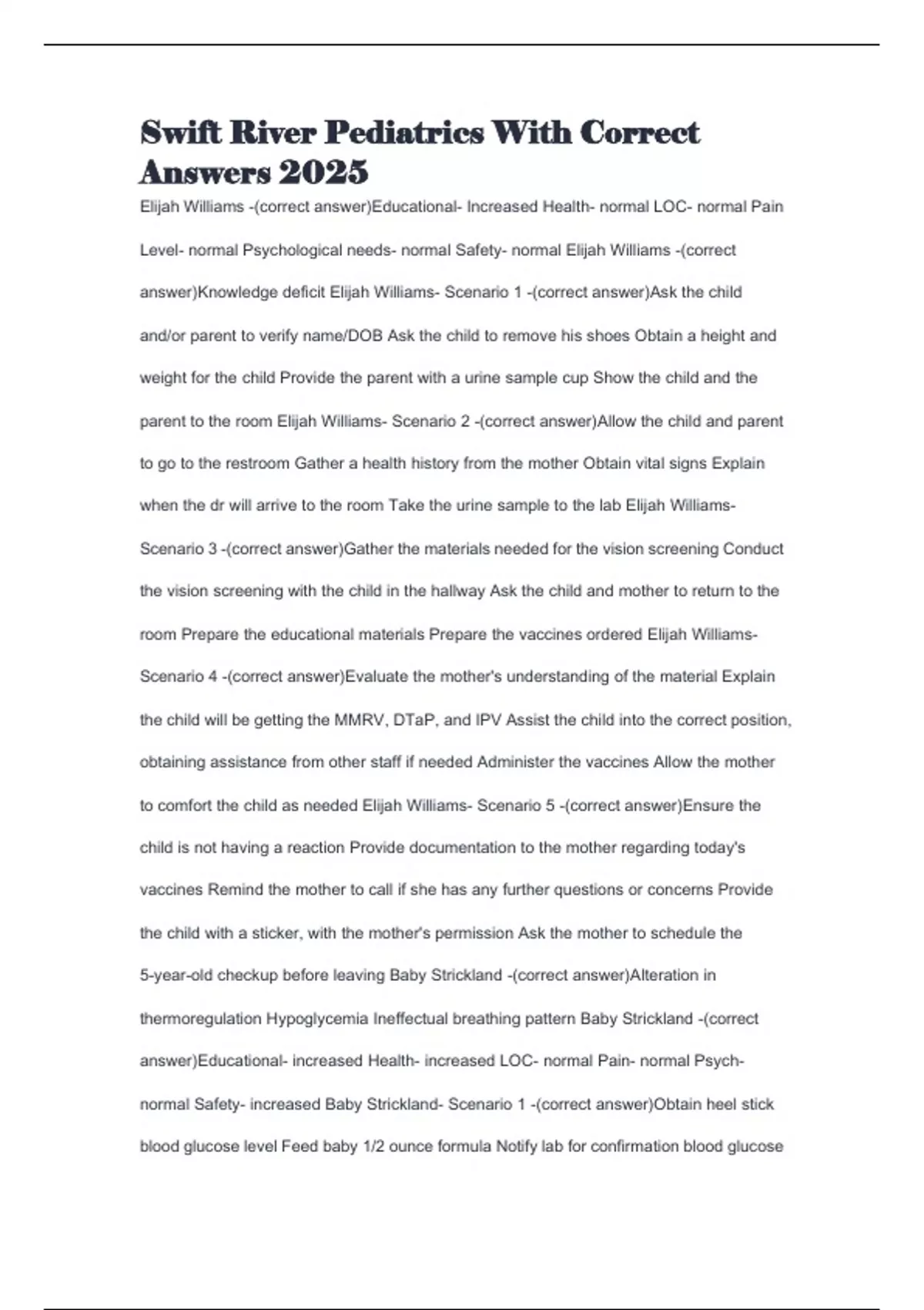 Elijah Williams -(correct answer)Educational- Increased Health- normal LOC- normal Pain