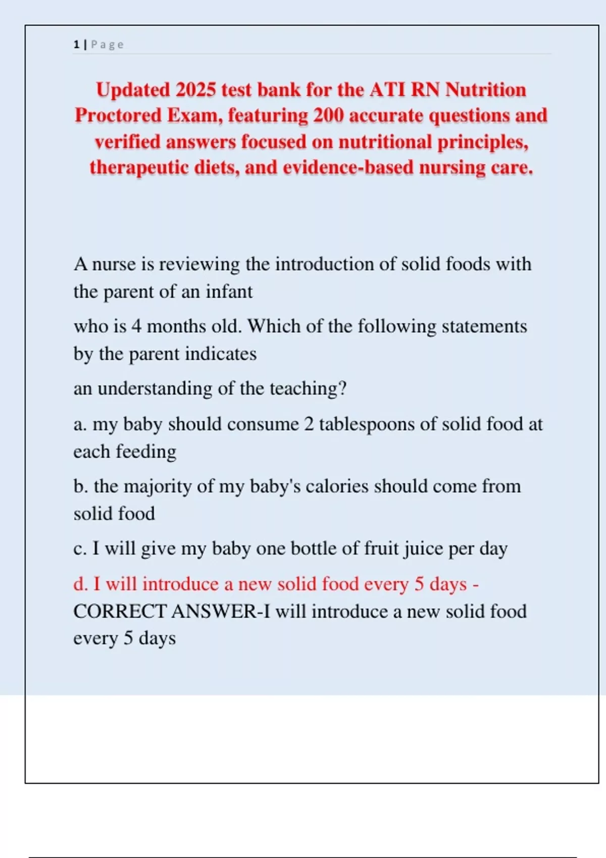 CORRECT ANSWER-I will introduce a new solid food