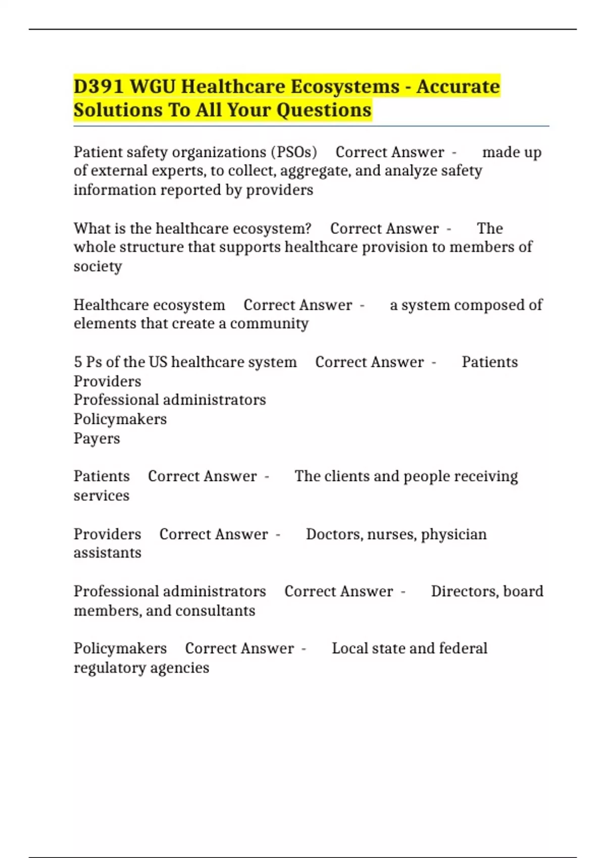 D391 WGU Healthcare Ecosystems - Accurate Solutions To All Your Questions
