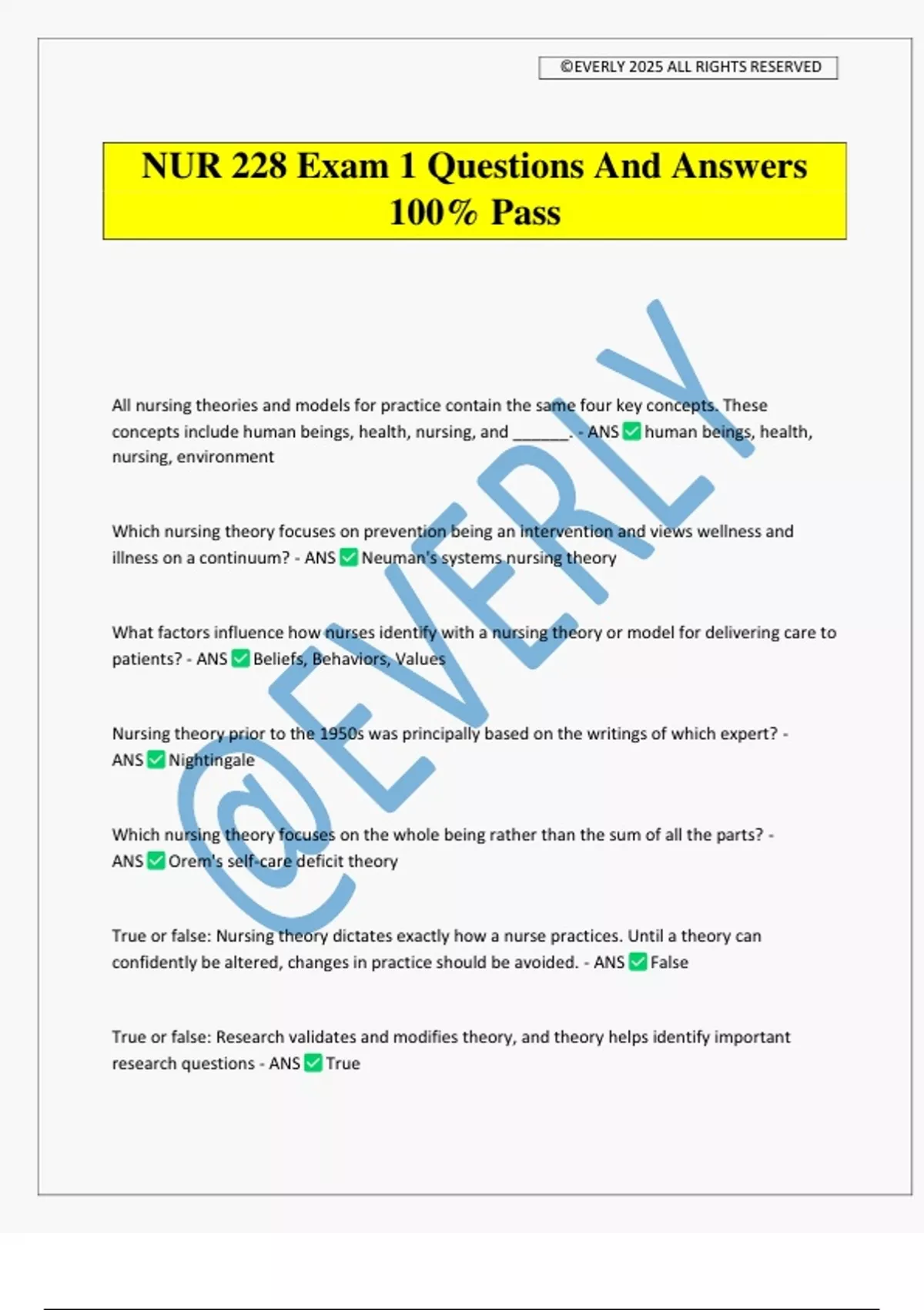 NUR 228 Exam 1 Questions And Answers