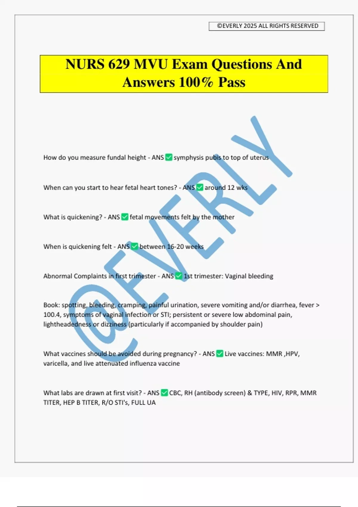 NURS 629 MVU Exam Questions And