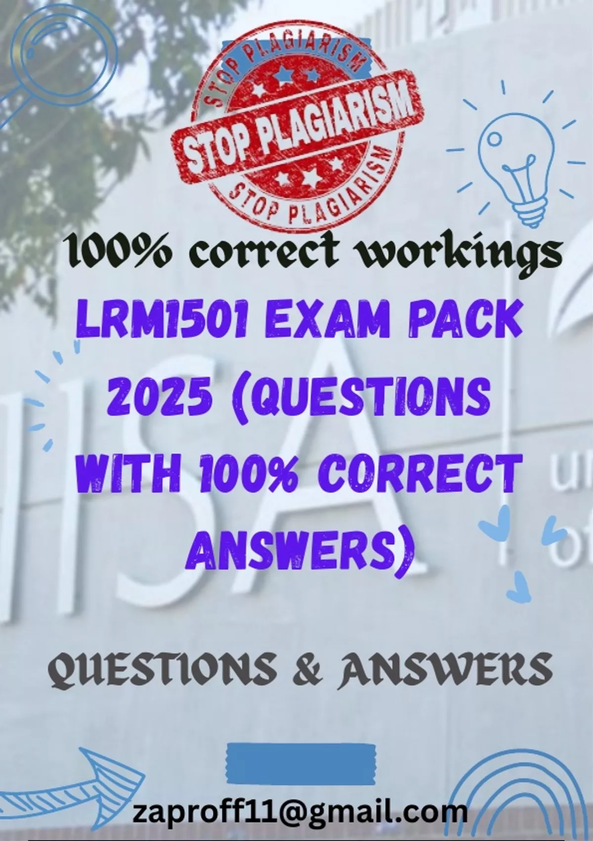 LRM1501 EXAM PACK 2025 LRM1501 QUESTIONS WITH DETAILED ANSWERS, PERFECT FOR EXAM PREPARATION.