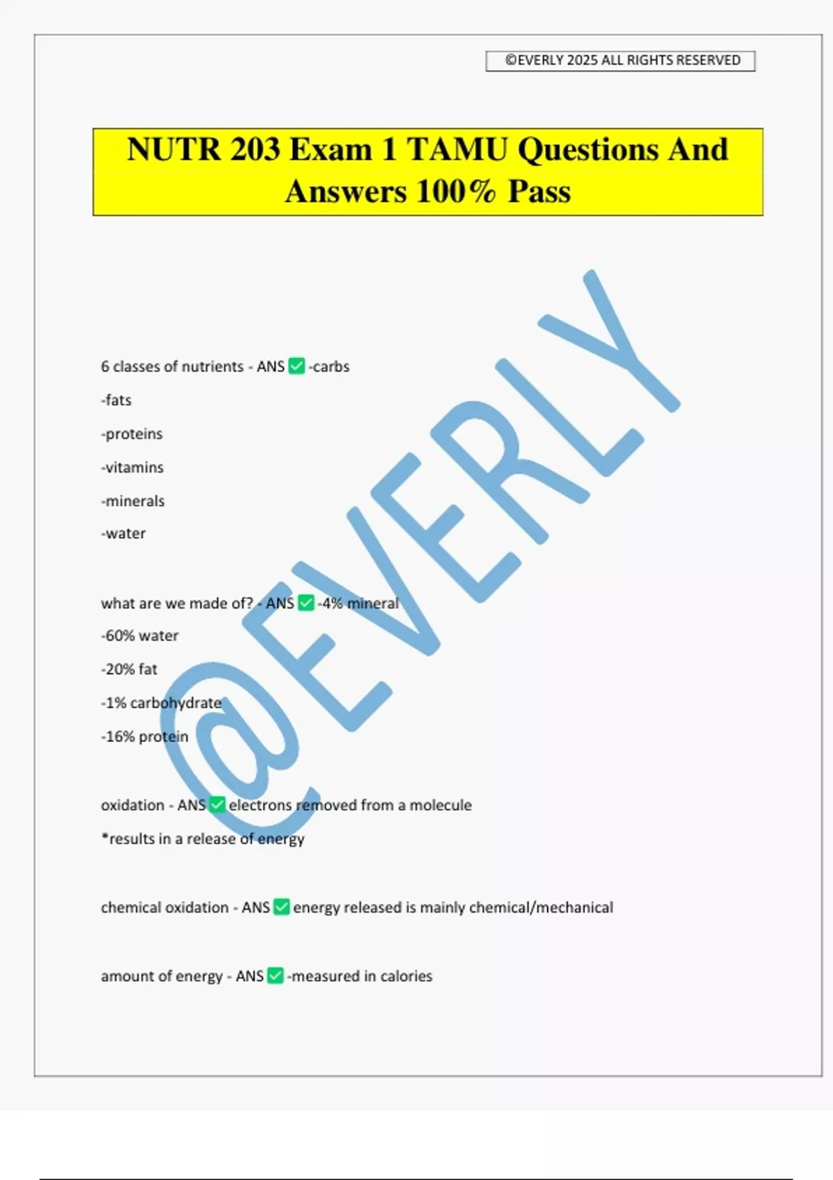 NUTR 203 Exam 1 TAMU Questions And