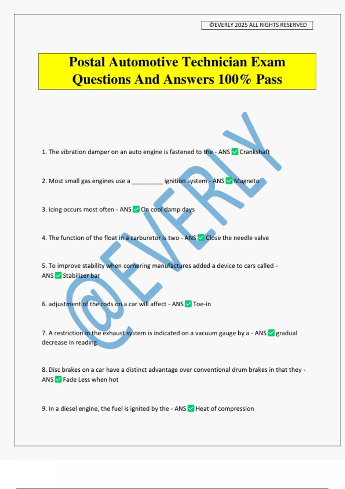Postal Automotive Technician Exam