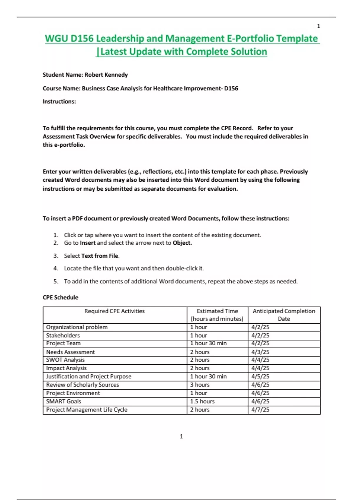 WGU D156 Leadership and Management E-Portfolio Template |Latest Update with Complete Solution