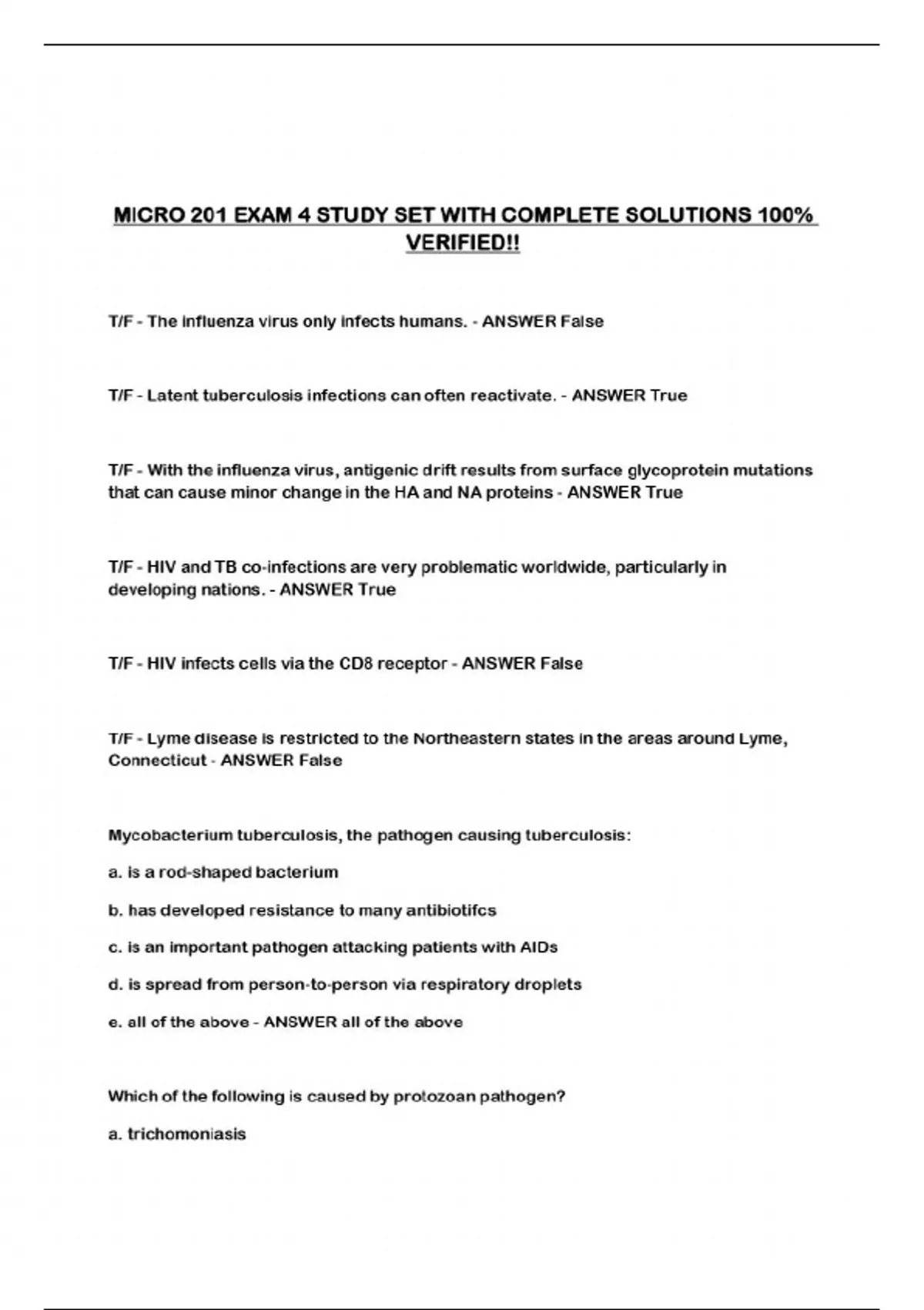 MICRO 201 EXAM 4 STUDY SET WITH COMPLETE SOLUTIONS 100% VERIFIED!!...
