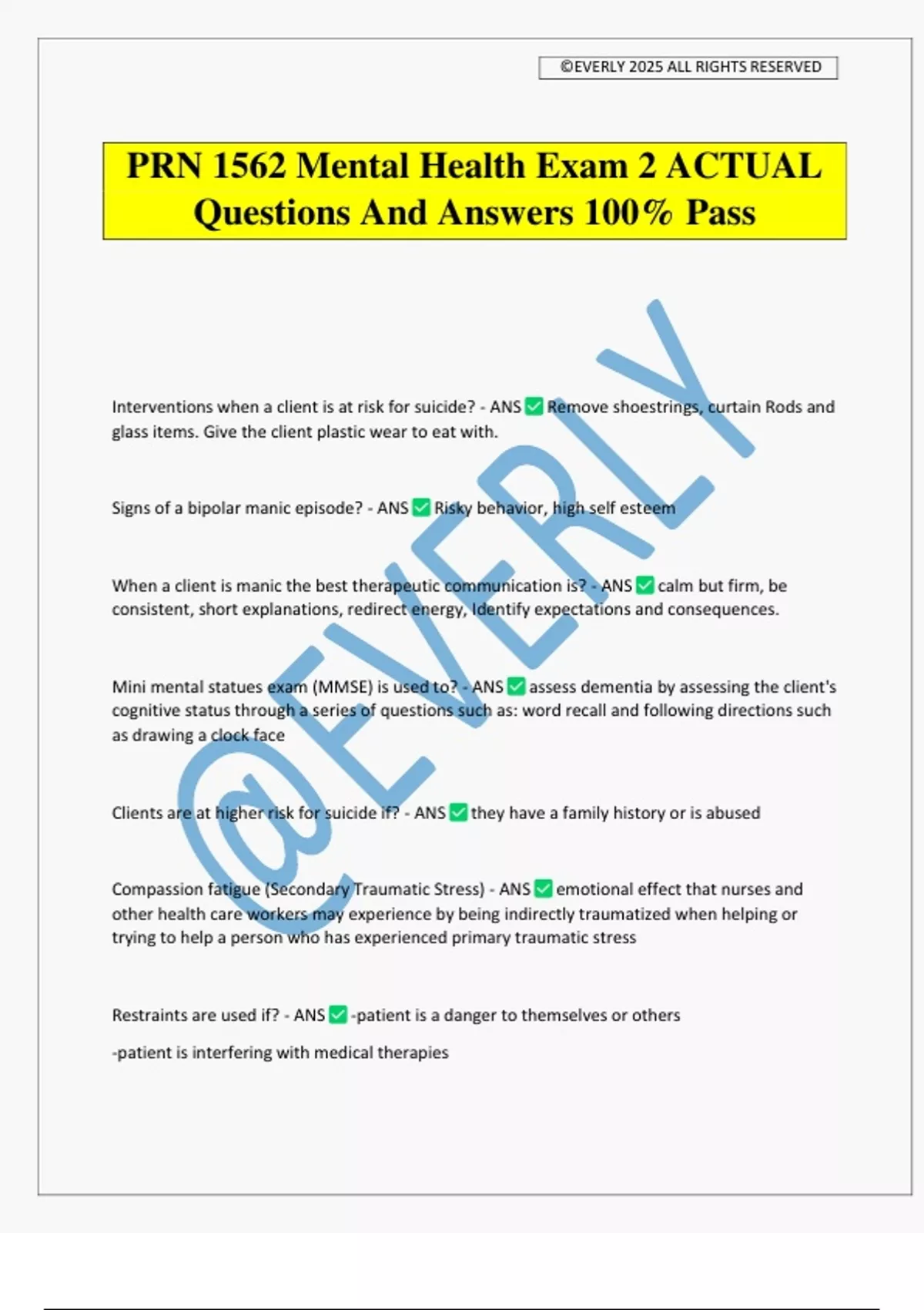 PRN 1562 Mental Health Exam 2 ACTUAL
