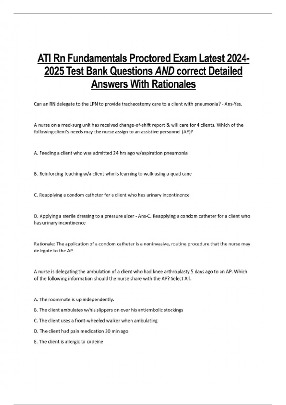 ATI Rn Fundamentals Proctored Exam Latest Test Bank Questions AND correct Detailed Answers With Rationales
