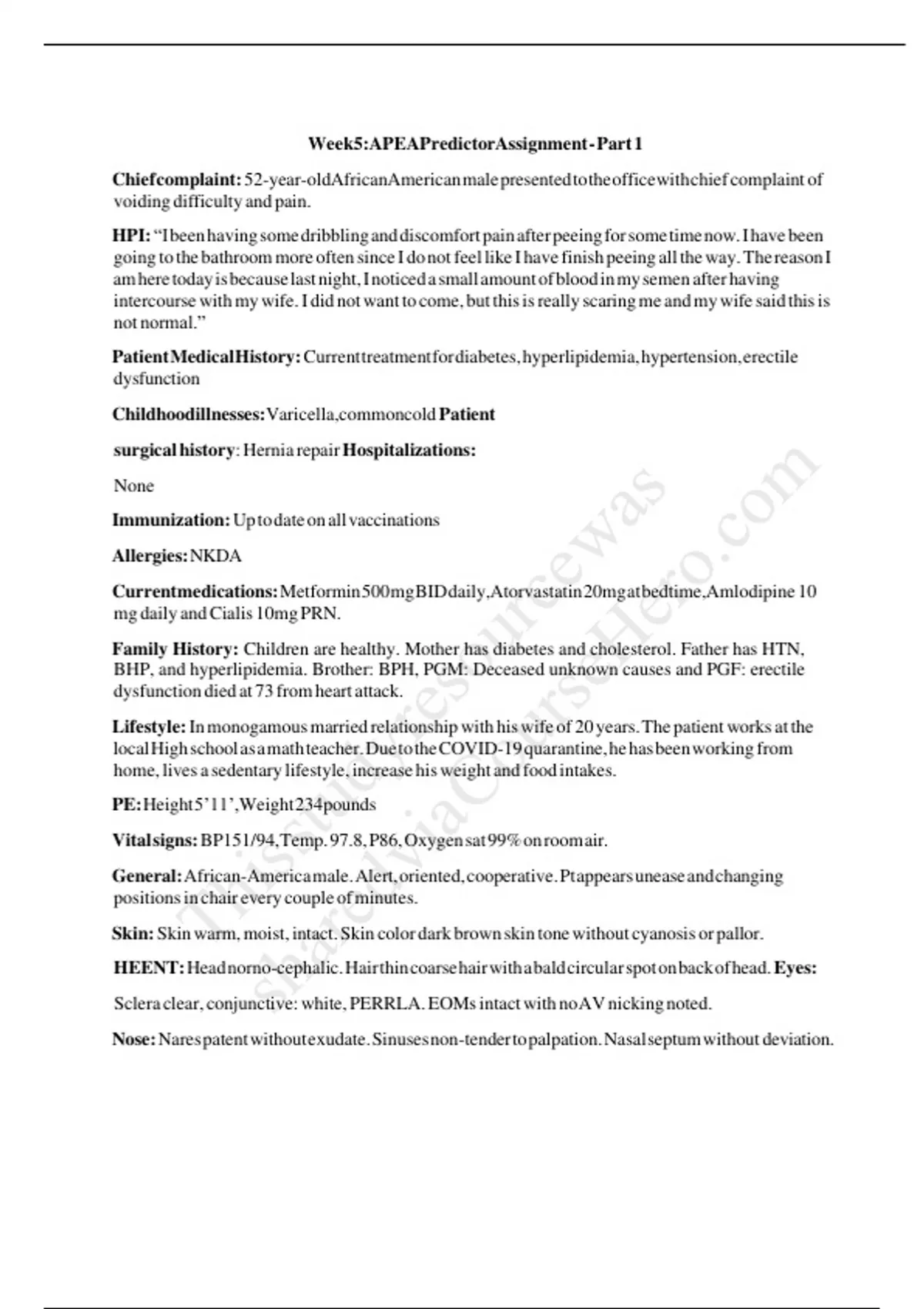 HPI: “I been having some dribbling and discomfort pain after peeing for some time now. I have been
