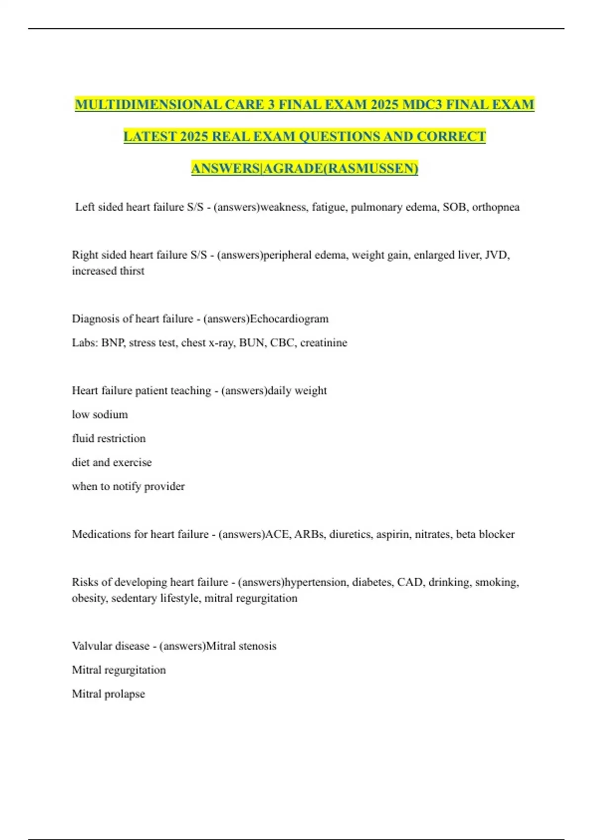 MULTIDIMENSIONAL CARE 3 FINAL EXAM 2025 MDC3 FINAL EXAM