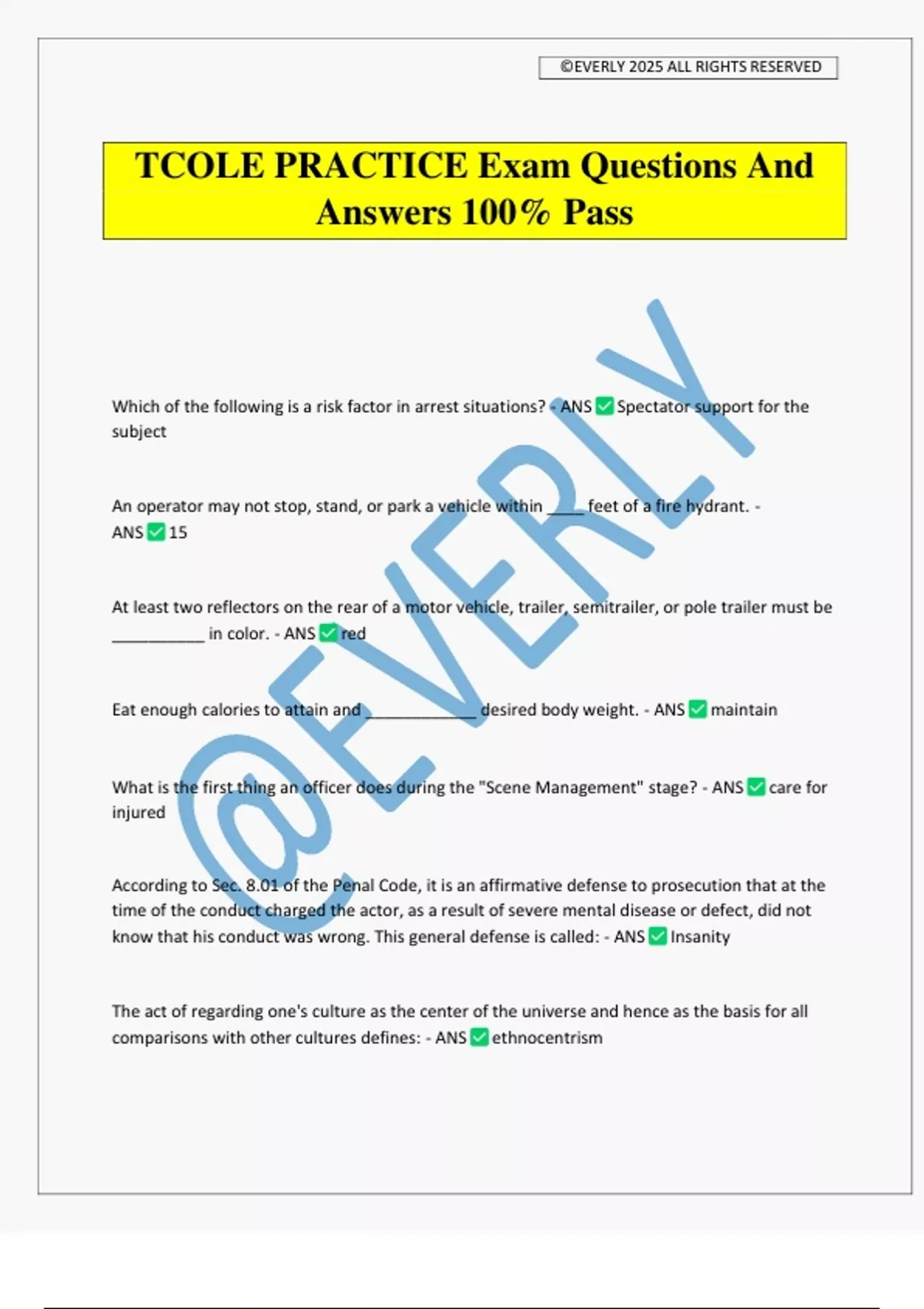 TCOLE PRACTICE Exam Questions And