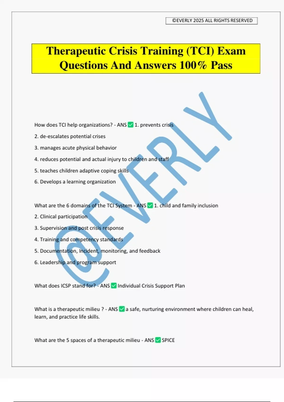 Therapeutic Crisis Training (TCI) Exam