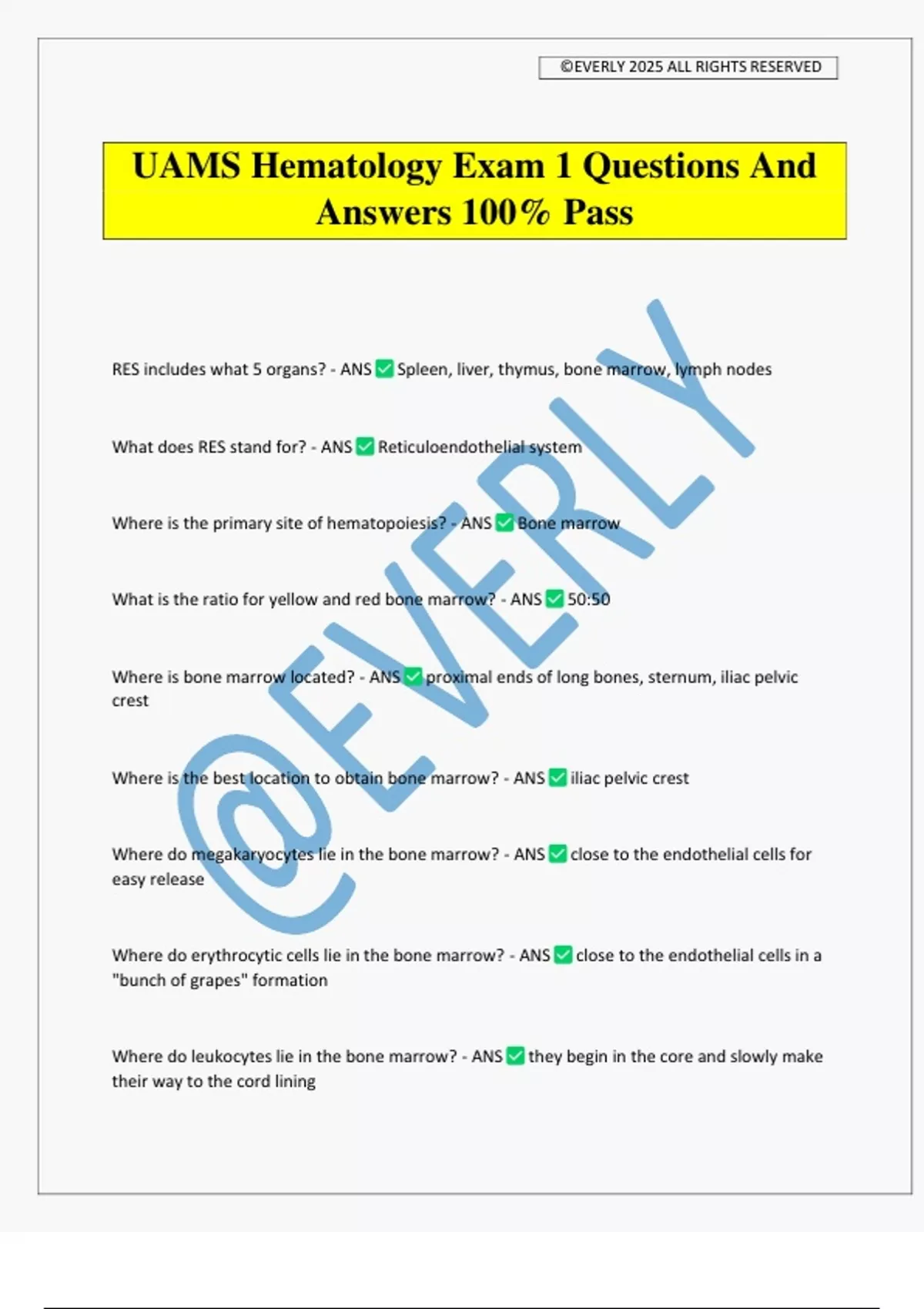 UAMS Hematology Exam 1 Questions And