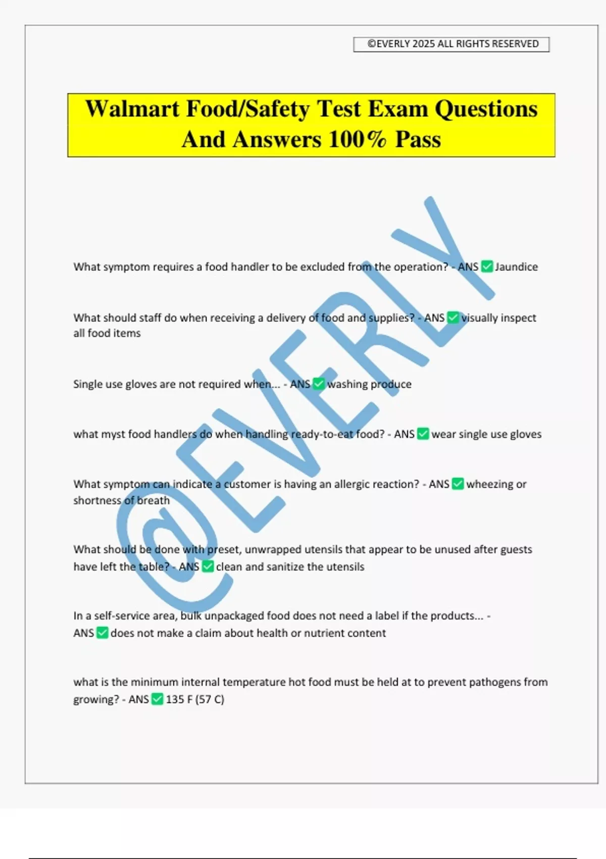 Walmart Food/Safety Test Exam Questions