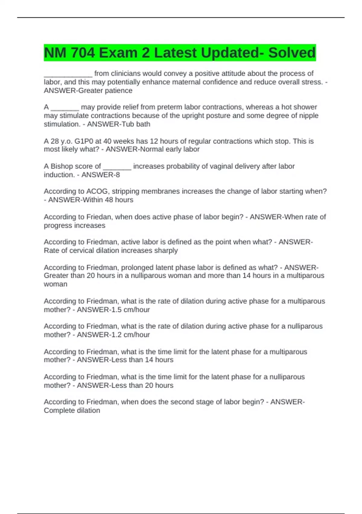 Friedman identified prolonged latent labor as what? - ANSWER-More than 20 hours in