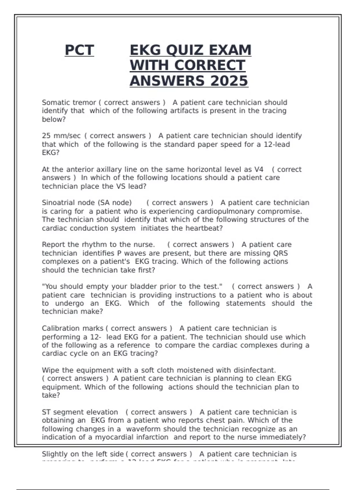 PCT EKG QUIZ EXAM WITH CORRECT ANSWERS 2025