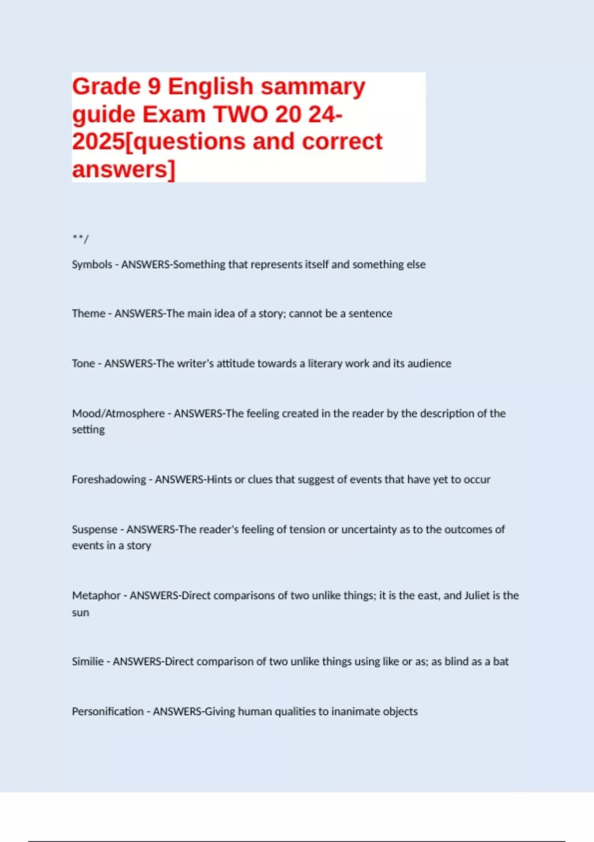 Climax - ANSWERS-The story's highest point where it is more suspenseful and interesting