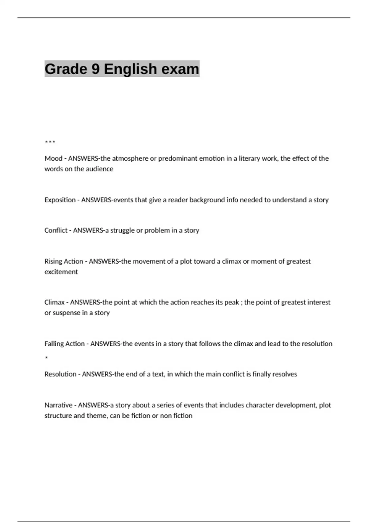 Exposition - ANSWERS-events that give a reader background info needed to understand a story