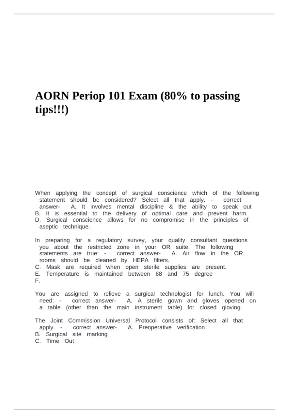nnneed: nn- nn nncorrect nnanswer- nn nnA. nnA nnsterile nngown nnand nngloves nnopened nnon
