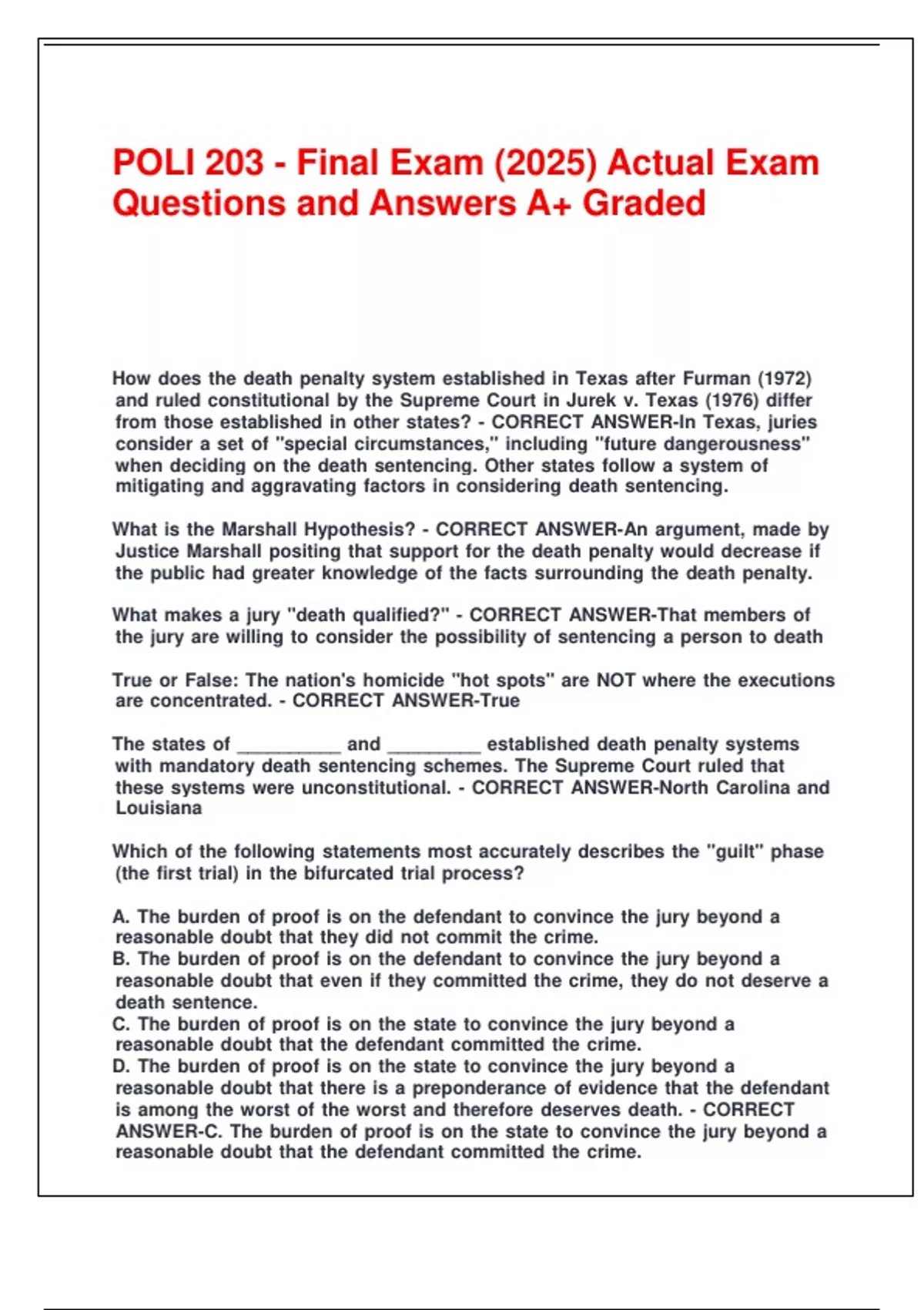 POLI 203 - Final Exam (2025) Actual Exam Questions and Answers A+ Graded.