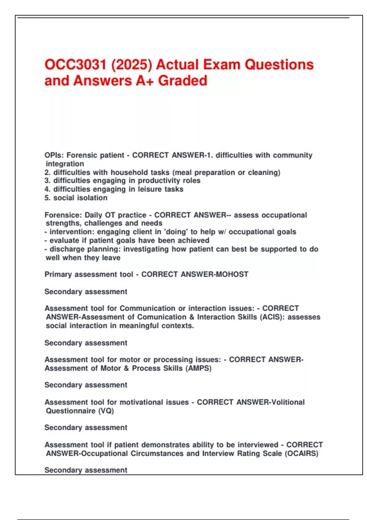 Forensice: .Daily .OT .practice .- .CORRECT .ANSWER-- .assess .occupational