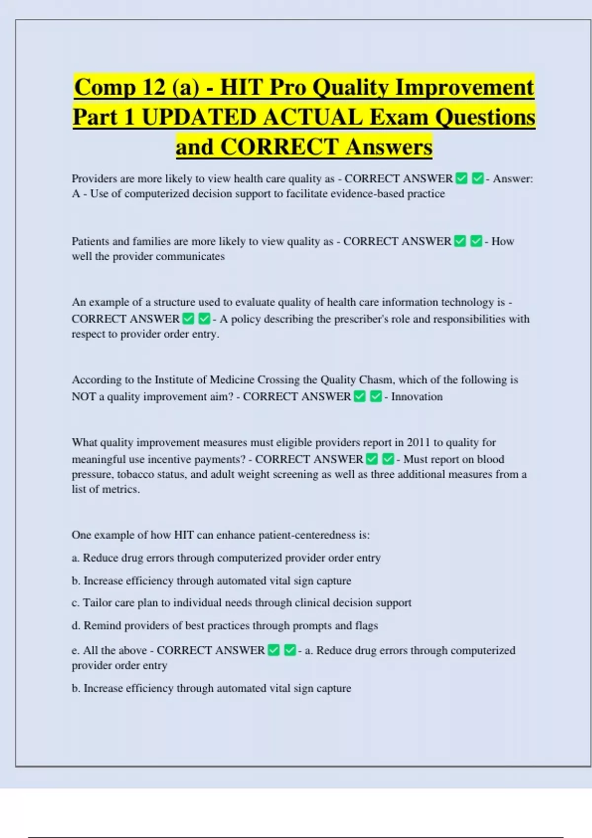 Providers are more likely to view health care quality as - CORRECT ANSWER - Answer: